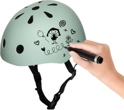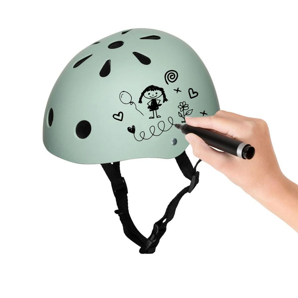 Šalmą galima dekoruoti pieštukais ir flomasteriais. Kai piešinys atsibosta, jį lengva nuvalyti ir sukurti naują originalią išvaizdą.