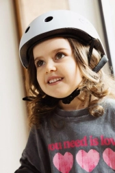 Praktiška tvirtinimo sistema su 48–55 cm reguliavimu ir reguliuojami pasmakriniai dirželiai leidžia tiksliai pritaikyti augančiai vaiko galvai. Atitiktis Europos standartui EN-71 pabrėžia patikimą apsaugą važiuojant dviračiu, paspirtuku, balansiniu dviratuku ar riedučiais.