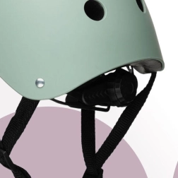 Lengvas ir saugus vaikiškas šalmas MoMi MIMI matinės žalios spalvos saugo važiuojant dviračiu, balansiniu dviratuku, paspirtuku ir riedučiais. Jis siūlo tvirtą ABS išorinį kevalą, vidinį EPS, galvos apimties reguliavimą 48–55 cm, 11 vėdinimo angų ir patogų putų paminkštinimą. Be to, vaikai gali jį kūrybiškai puošti flomasteriais.