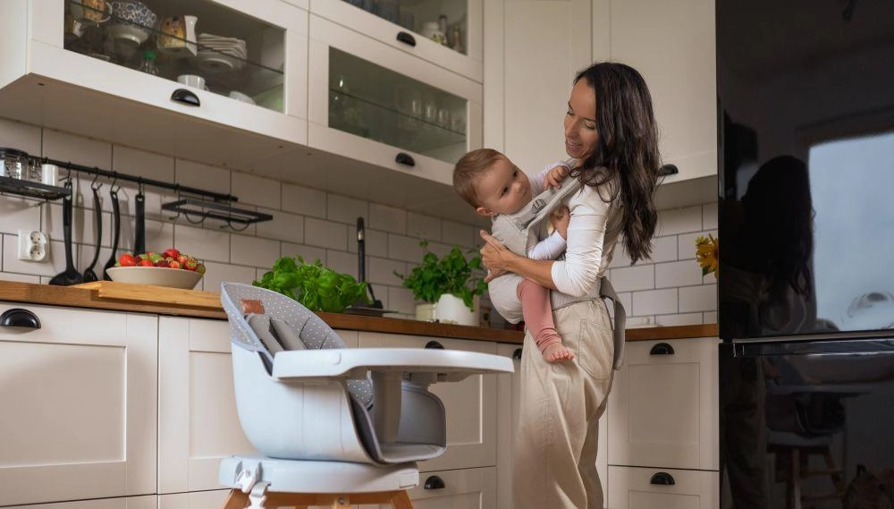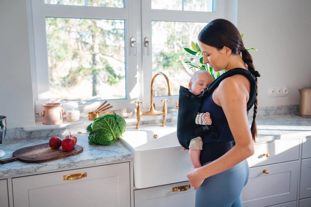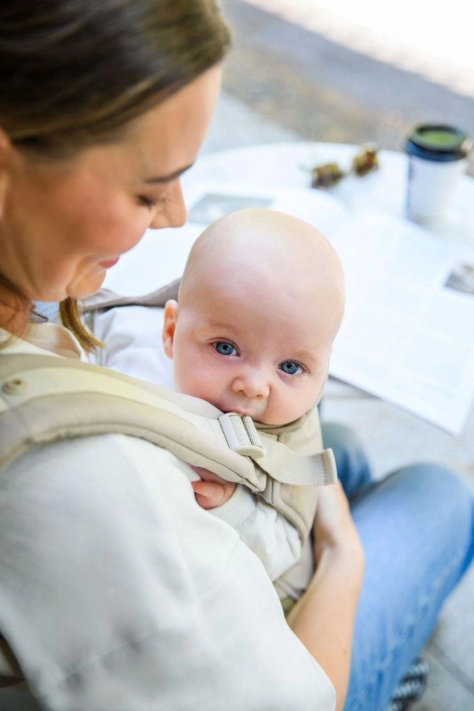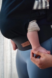 Dėl plataus juosmens diržo, paminkštintų pečių dirželių ir minkštų sagtelių uždengimų nešioklis tolygiai paskirsto svorį ir išlieka patogus net ilgesnį laiką. Nuimamas gobtuvėlis saugo galvytę nuo vėjo ir šviesos, praktinė kišenė talpina smulkmenas, o gumelės dirželių galuose tvarkingai paslepia perteklines juostas.