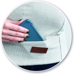 Maža kišenėlė smulkmenoms, gumelės dirželių galams sutraukti ir kompaktiškas dydis sulanksčius paverčia nešioklį puikiu pagalbininku namuose ir kelionėse.