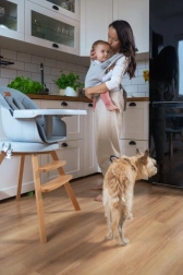 Platus reguliuojamas skydelis palaiko natūralų nugaros linkį ir užtikrina M kojyčių padėtį. Tai prisideda prie sveikos stuburo ir klubų sąnarių raidos.