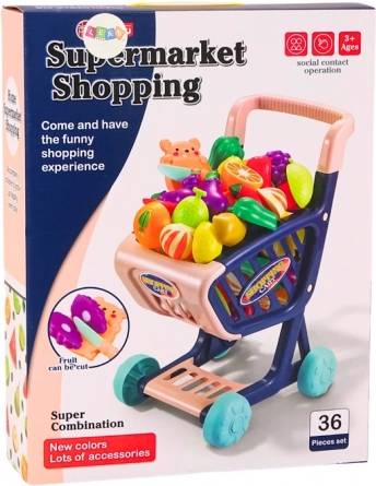 Smagus ir edukacinis rinkinys mažiesiems pardavėjams: vaikiškas pirkinių vežimėlis, pilnas spalvingų pjaustomų vaisių ir daržovių. Tvirta plastikinė konstrukcija, platūs ratai stabilumui ir patogi rankena užtikrina saugų žaidimą. Realistiški maisto produktai skatina vaizduotę, smulkiąją motoriką ir mokymąsi apie sveiką mitybą. Tinka nuo 3 metų, su CE sertifikatu ir atitinka EN71 standartą.