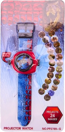 Linksmų vaikų elektroninių laikrodžių su integruotu dinozaurų projektoriumi rinkinys siūlo 24 skaidres projekcijai, paprastą valdymą mygtuku, patogų platų dirželį ir baterijas pakuotėje. Atitinka CE ir EN71 ir tinka nuo 3 metų.
