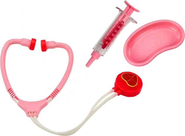 Linksmas ir lavinantis vaikiškas gydytojo rinkinys rožiniame lagaminėlyje skatina fantaziją, empatiją ir smulkiąją motoriką. Jame yra stetoskopas, žirklės, pincetas ir švirkštai bei kiti priedai, kurie saugiai supažindina vaikus su medicinos pasauliu. Praktiškas plastikinis lagaminėlis palengvina laikymą ir nešiojimą. Tinka vaikams nuo 3 metų, su CE sertifikatu ir atitiktimi standartui EN71.
