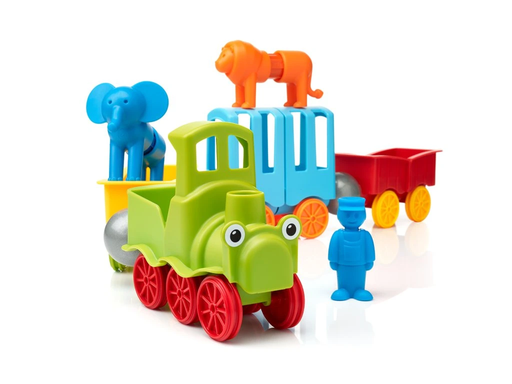 Vaikai susikurs lokomotyvą ir tris vagonėlius, sudės du trijų dalių gyvūnėlius ir pridės mašinisto figūrėlę. Atskiras gyvūnėlių dalis galima laisvai derinti – taip kuriami tikri ir fantazijiniai gyvūnai, lavinantys kūrybinį mąstymą ir akių–rankų koordinaciją.