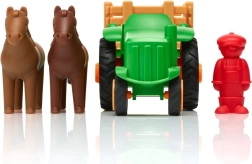 Rinkinyje yra traktorius ir du arkliukai, kuriuos vaikai gali surinkti pagal savo sumanymus. Ūkininko figūrėlė suteikia dar daugiau pramogos, skatindama vaizduotės žaidimą ir socialinių įgūdžių ugdymą. Ryškios spalvos ir paprastas dizainas daro šį konstruktorių tinkamą mažoms rankytėms.