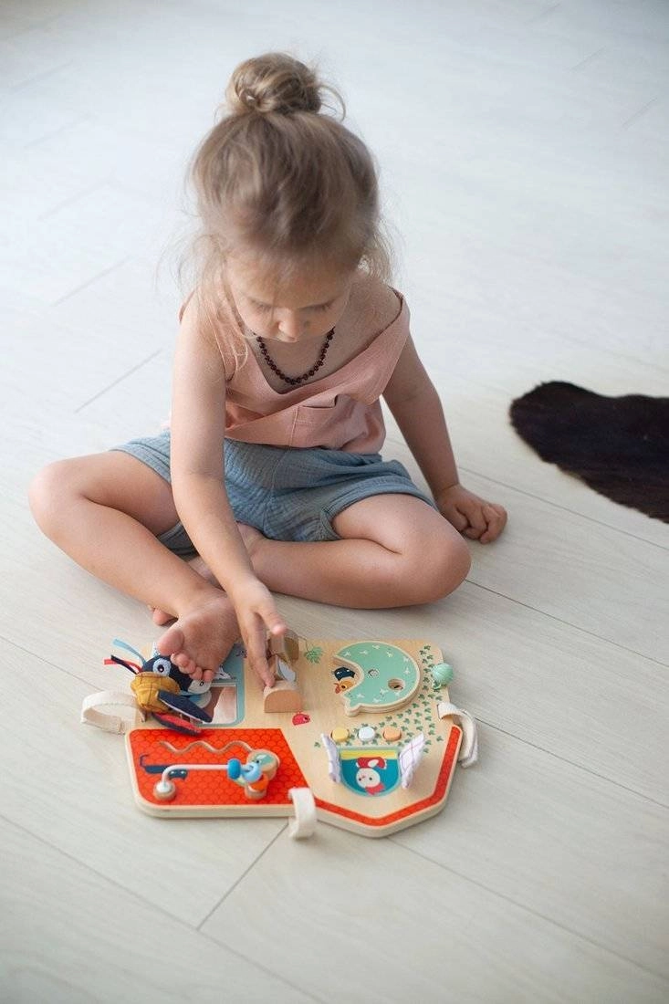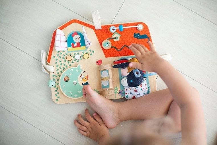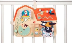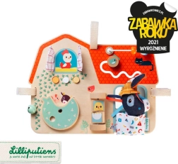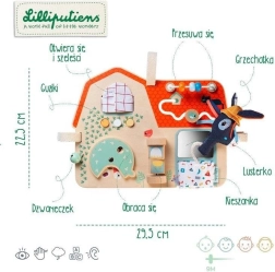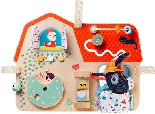 Lilliputiens ūkio tema medinė lentelė – originalus, daugiafunkcis žaislas, suteikiantis pramogą ir mokymąsi mažiesiems tyrinėtojams. Joje yra čežantys langeliai, spaudžiami mygtukai, varpelis, sukami elementai ir veidrodėlis. Vaikai gali pažinti ūkio pasaulį ir lavinti akių–rankų koordinaciją. Lentelė papuošta ūkio gyvūnų draugų iliustracijomis ir turi kelis minkštus tekstilinius elementus.