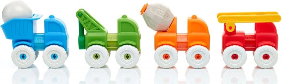Surinkite gaisrinę, sunkvežimį, betono maišyklę ir krautuvą – arba keiskite jų dalis tarpusavyje. Detalių įvairumas lavina vaizduotę ir teminį žaidimą.
