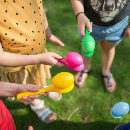 Kiaušinių estafetė – paprastas ir įtraukiantis judrus žaidimas vaikams ir suaugusiesiems. Žaidėjai neša ant plastikinio šaukšto spalvotą „kiaušinį“ su lukštu ir stengiasi įveikti trasą jo nenumesdami. Puikus pasirinkimas vaikų šventėms, darželiams, stovykloms ir šeimos popietėms lauke ar sporto salėje.