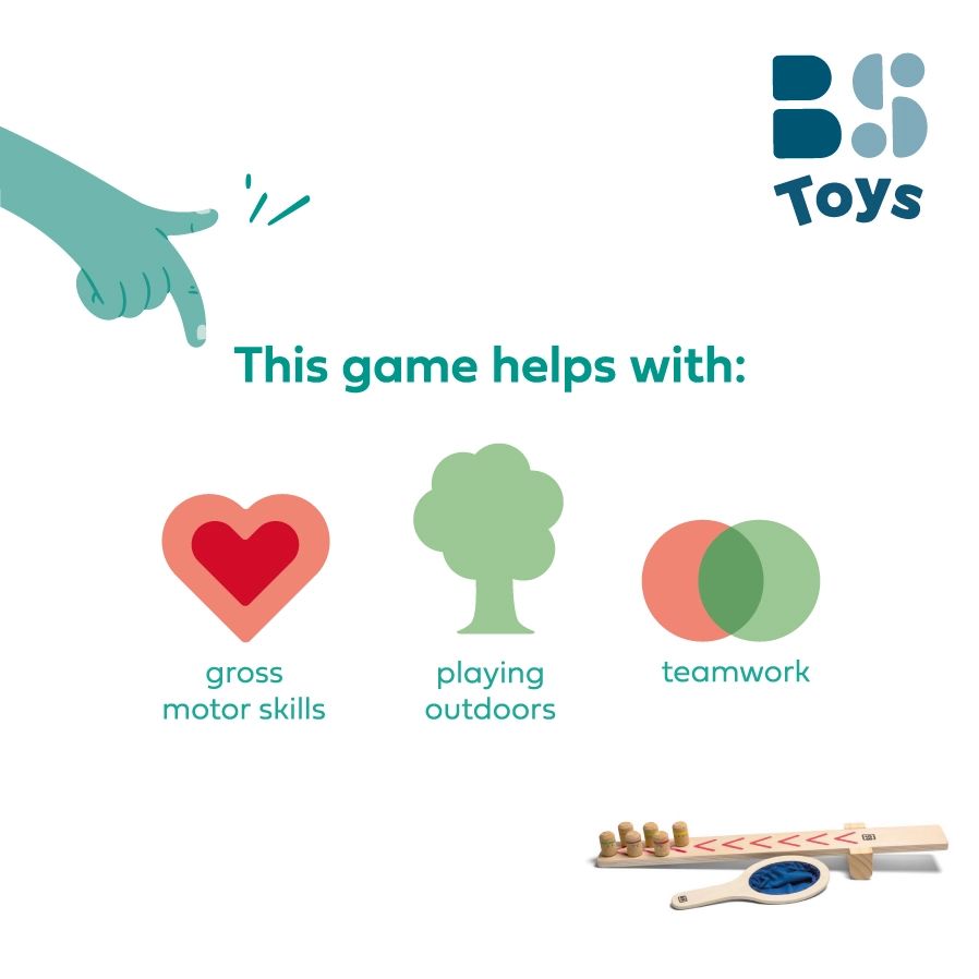 Ilga pusiausvyros veikla ir dinamiškas judėjimas išlaiko vaikų dėmesį ir energiją. Puikiai tinka žaisti poromis arba kaitaliojant komandoje.