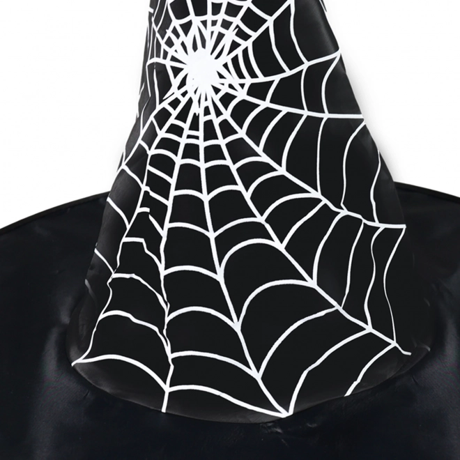 Stilinga vaikiška skrybėlė mažiems burtininkams ir raganaitėms su ryškiu baltu voratinkliu ant juodo pagrindo. Idealu Helovinui, karnavalui ir teminiams vakarėliams – lengvas, patogus ir išraiškingas kostiumo aksesuaras.