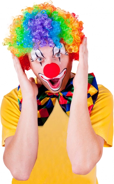 Spalvingas klouno stiliaus perukas suaugusiesiems – ideali pasirinktis karnavalams ir linksmoms šventėms. Pasiruoškite daugybei juoko!