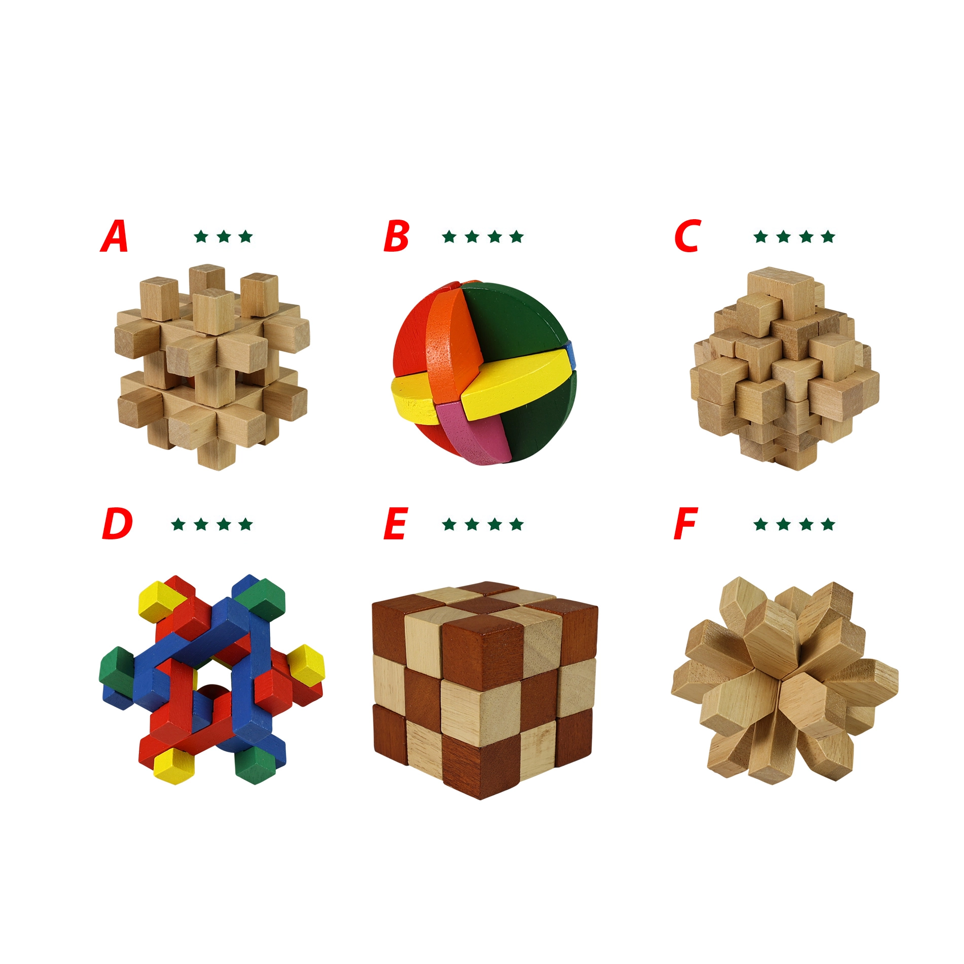 Šis medinis galvosūkis – puikus pasirinkimas kiekvienam, norinčiam lavinti problemų sprendimo įgūdžius. Siūlome šešis įvairius variantus, suteikiančius skirtingus iššūkių lygius.