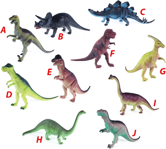 Rinkinyje yra dešimt skirtingų dinozaurų rūšių įvairiomis spalvomis, kurios sužavės kiekvieną vaiką savo įvairove.