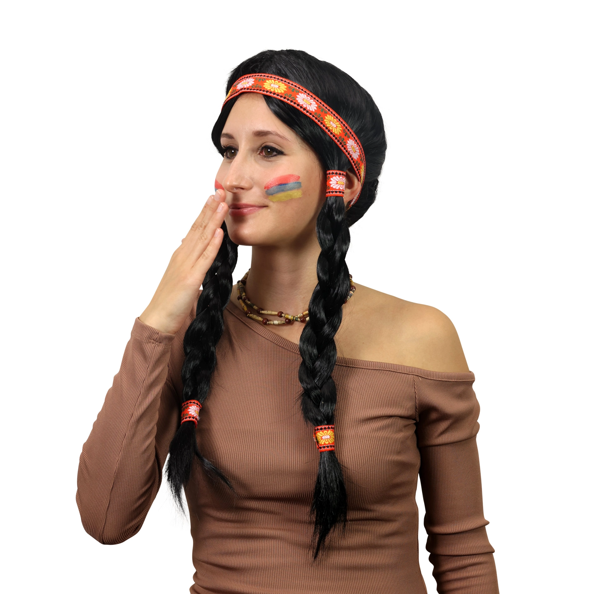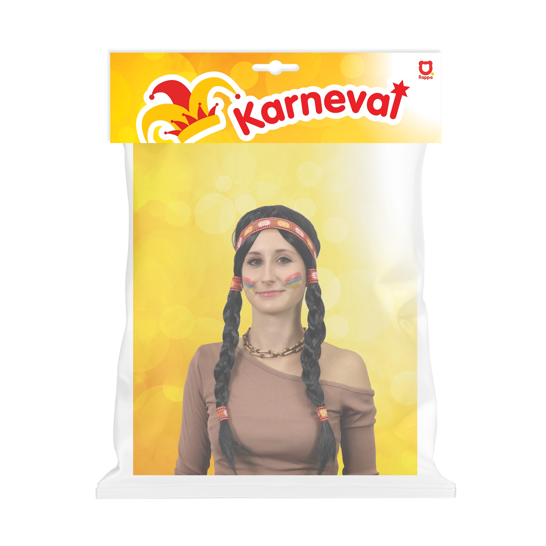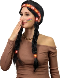 Stilingas karnavalinis perukas su dvigubomis kasomis ir dekoratyvine lankeliu suteiks jūsų kostiumui autentišką indėnišką atspalvį. Dėl ilgų juodų kasų, dekoratyvinio lankelio ir patogaus dėvėjimo jis idealiai tinka karnavalui, teminiams vakarėliams ir cosplay. Juostelių spalva gali skirtis.