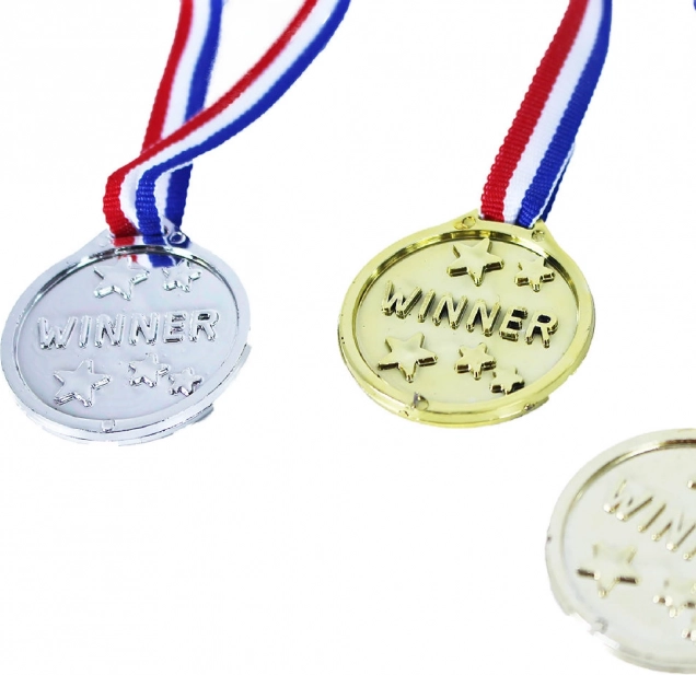 - Trys skirtingi medaliai: auksinis, sidabrinis ir bronzinis