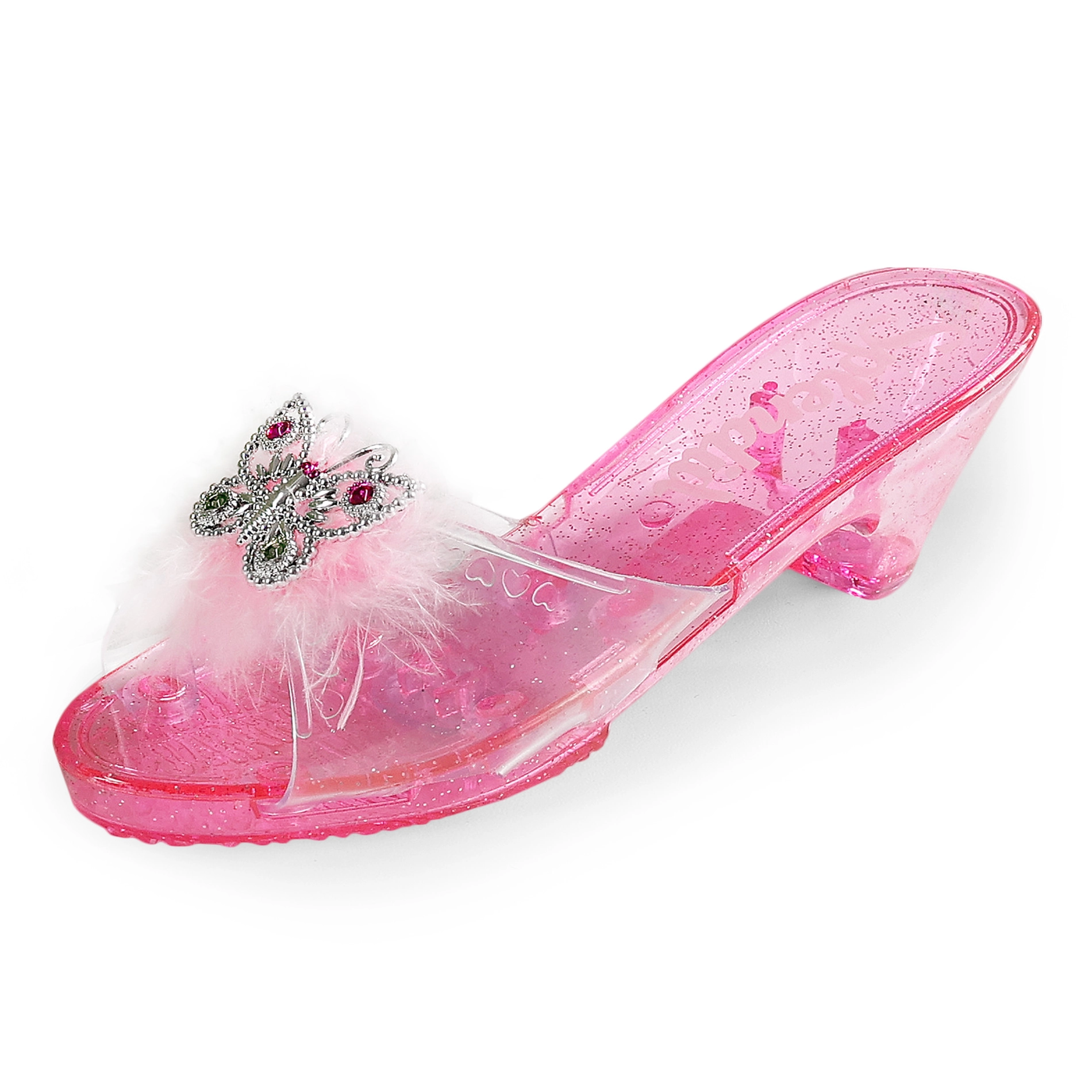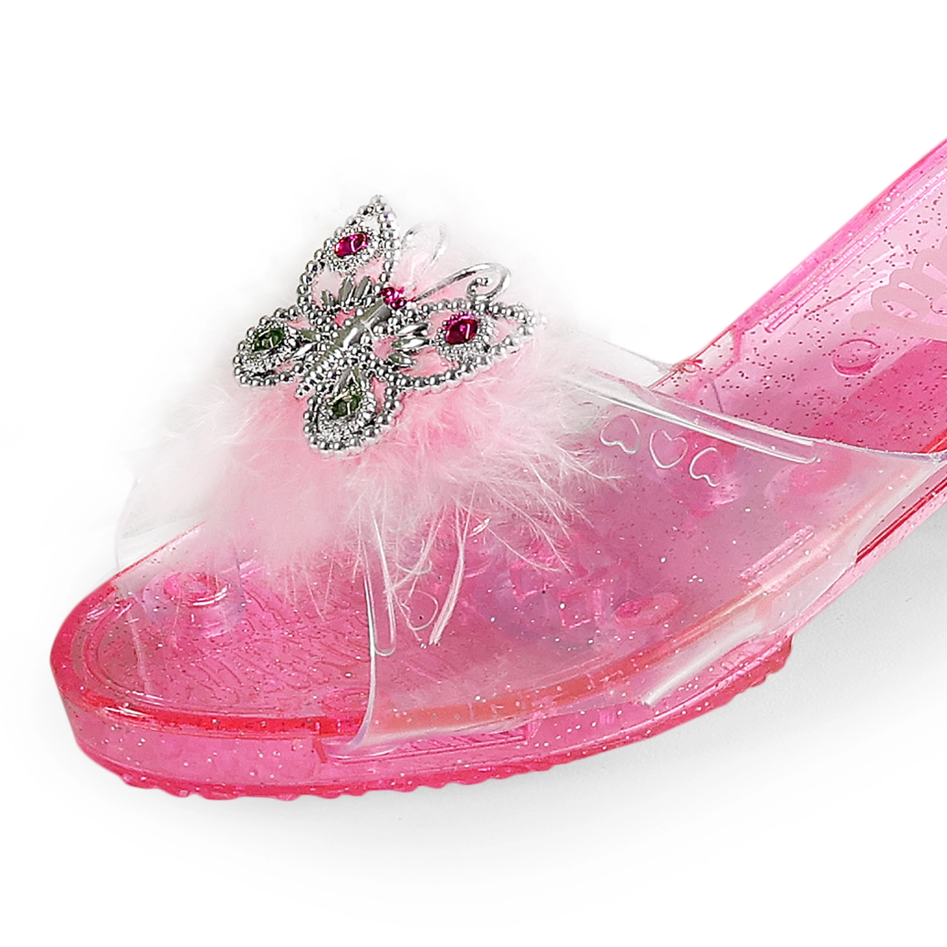 Princesiški bateliai, kurie kiekvieną aprangą paverčia pasaka. Auksinės ir rožinės spalvos, papuošti nuostabiu drugeliu ir plunksnomis – tai ideali pasirinktis mažosioms princesėms.