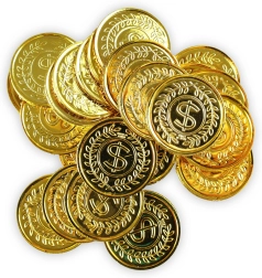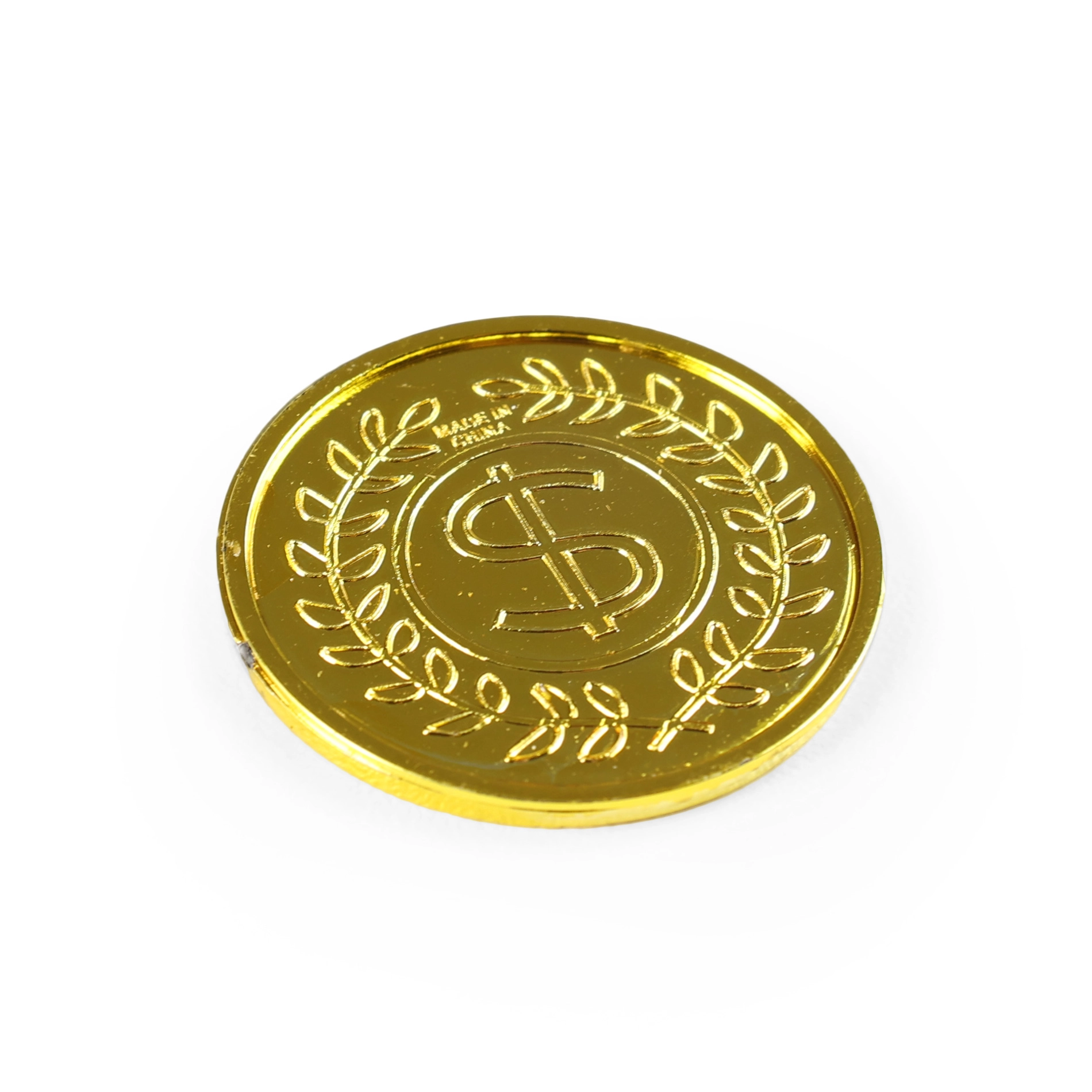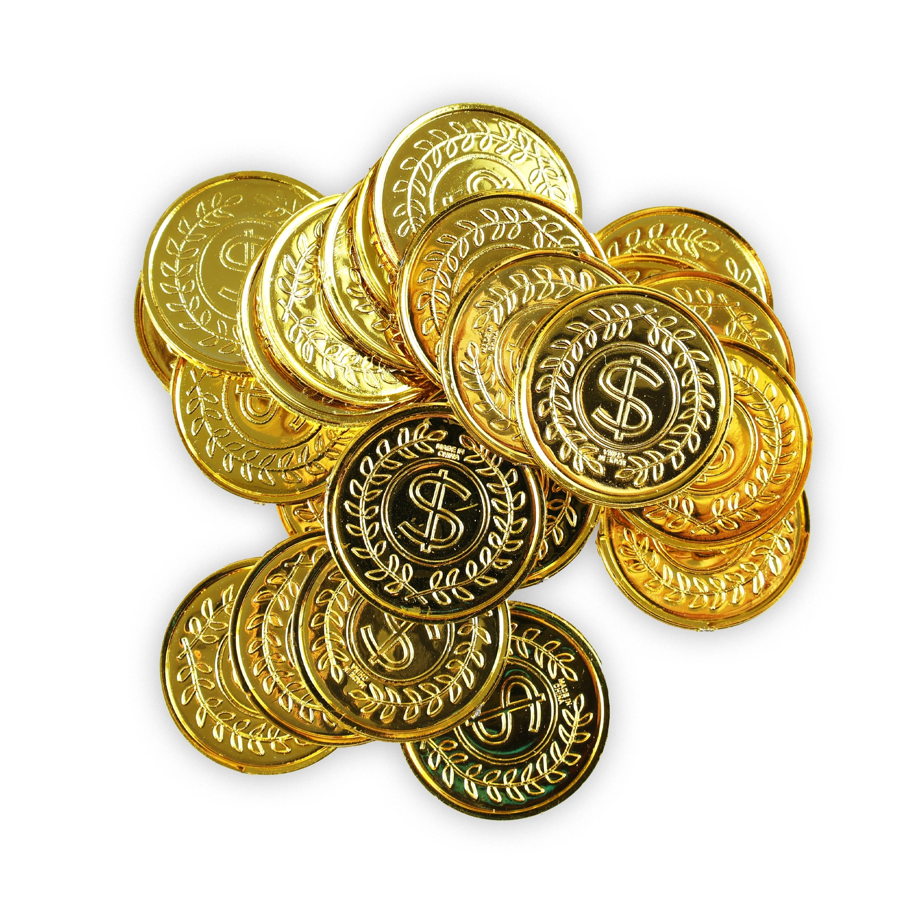 Suteikite vaikams ir suaugusiesiems žaidimų džiaugsmo su auksinių monetų rinkiniu, kurios atrodo įspūdingai, o dėl plastikinės medžiagos yra lengvos, saugios ir patvarios. Blizgus paviršius ir reljefinis dolerio motyvas suteikia jūsų žaidimams ir dekoracijoms patrauklią išvaizdą.