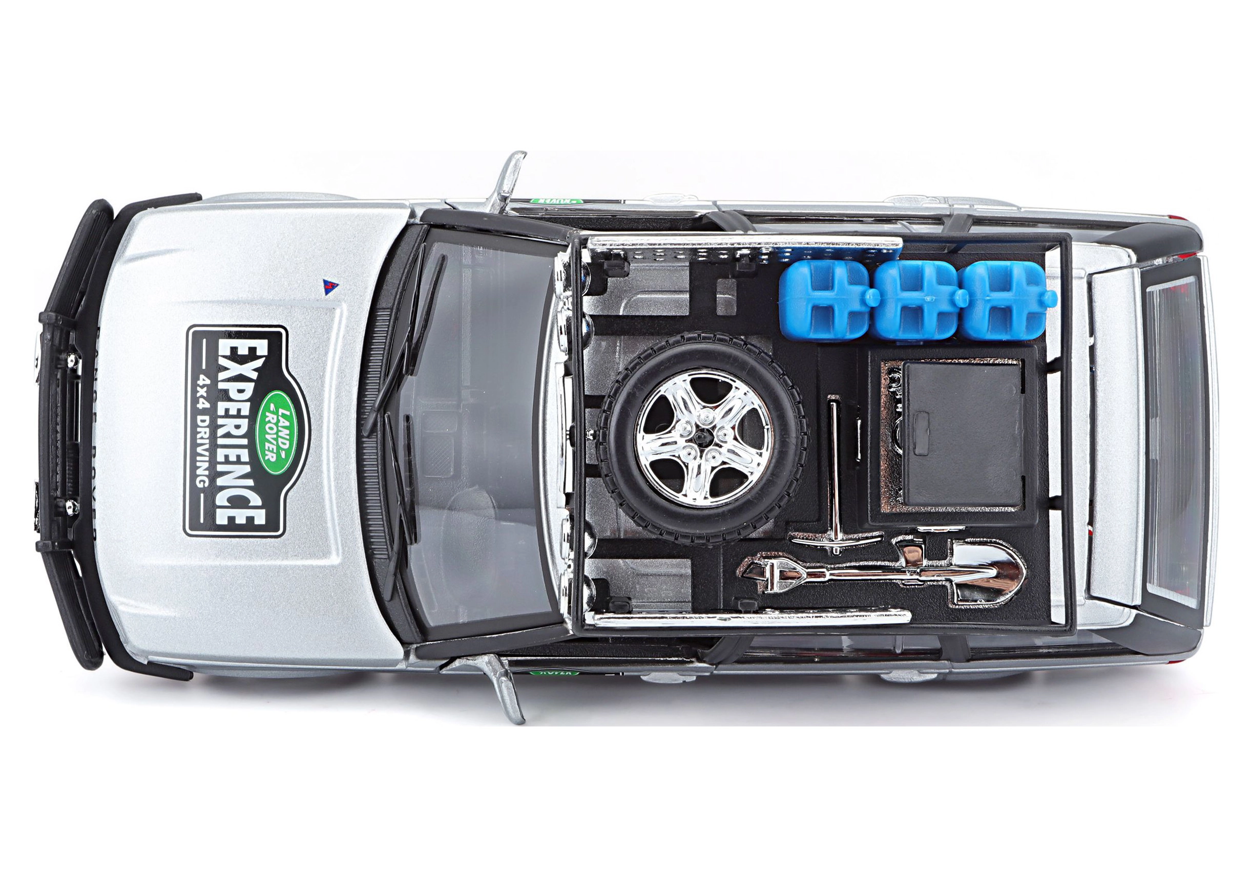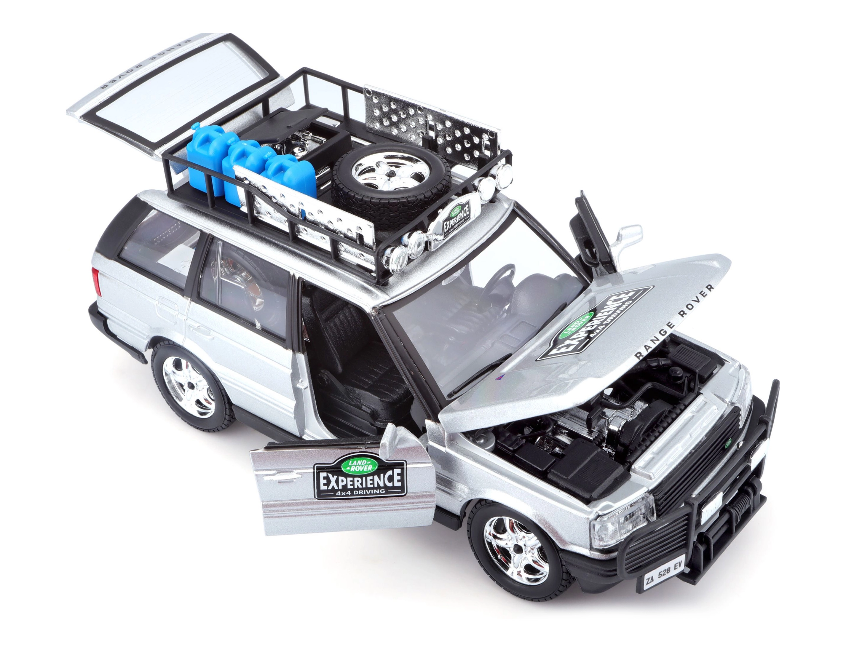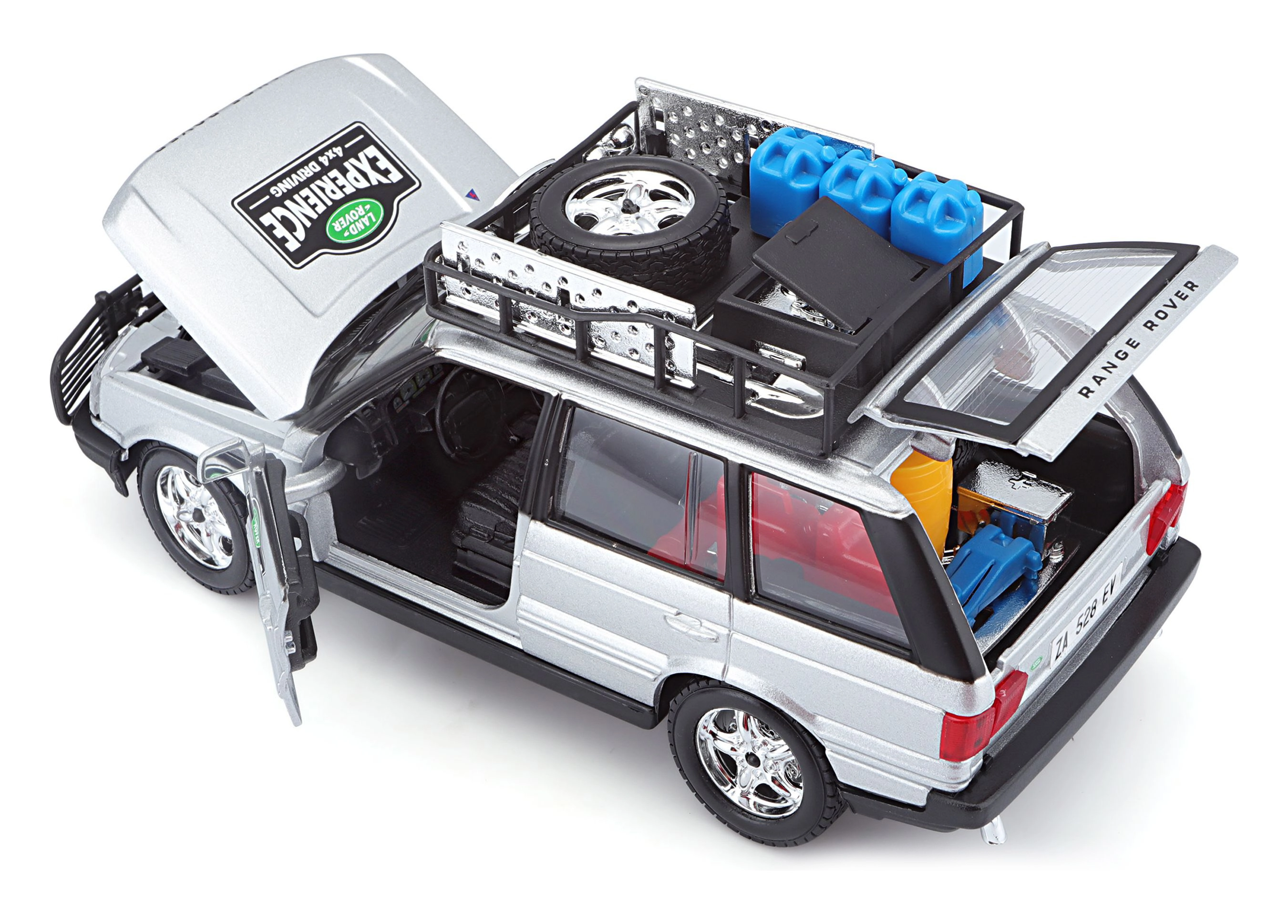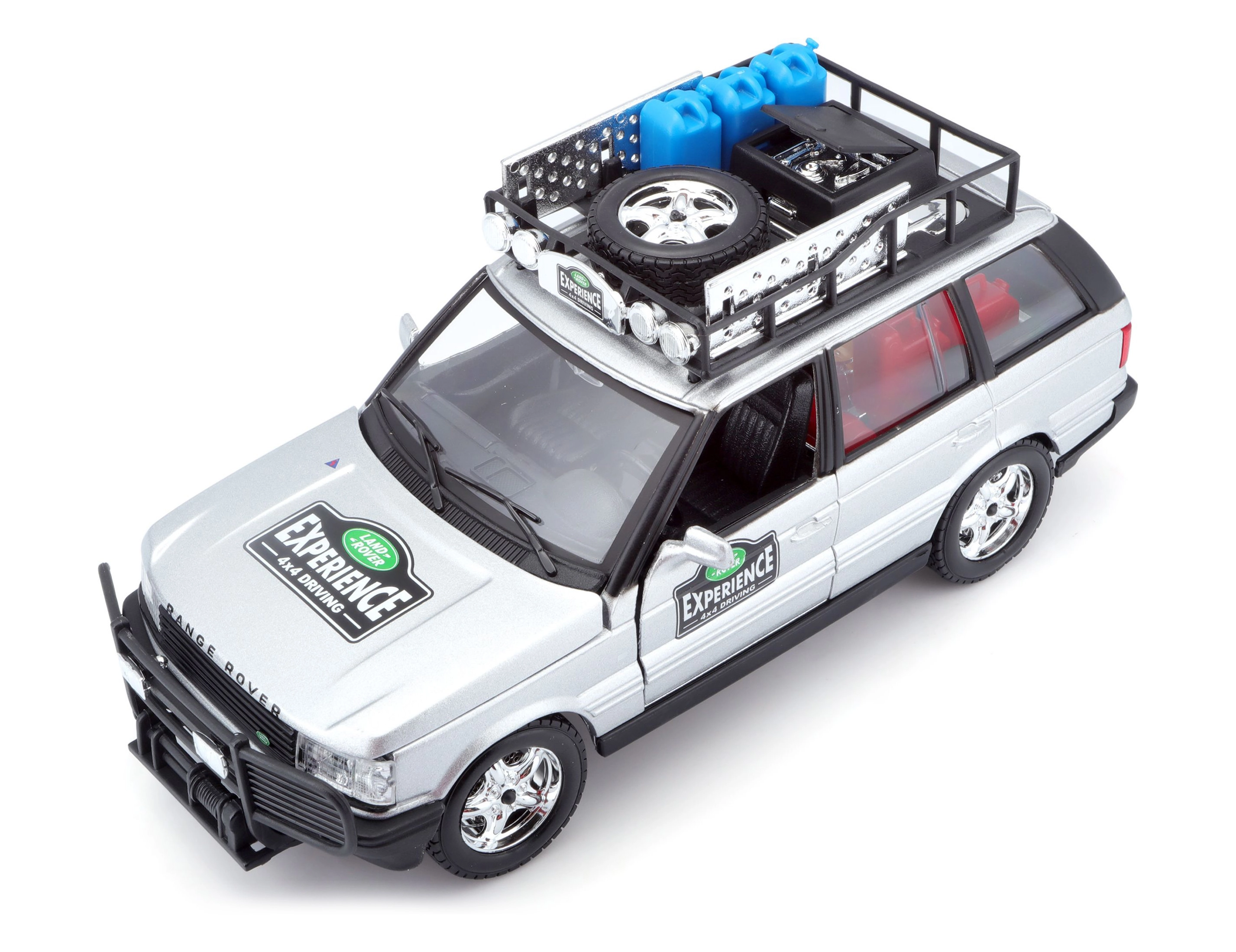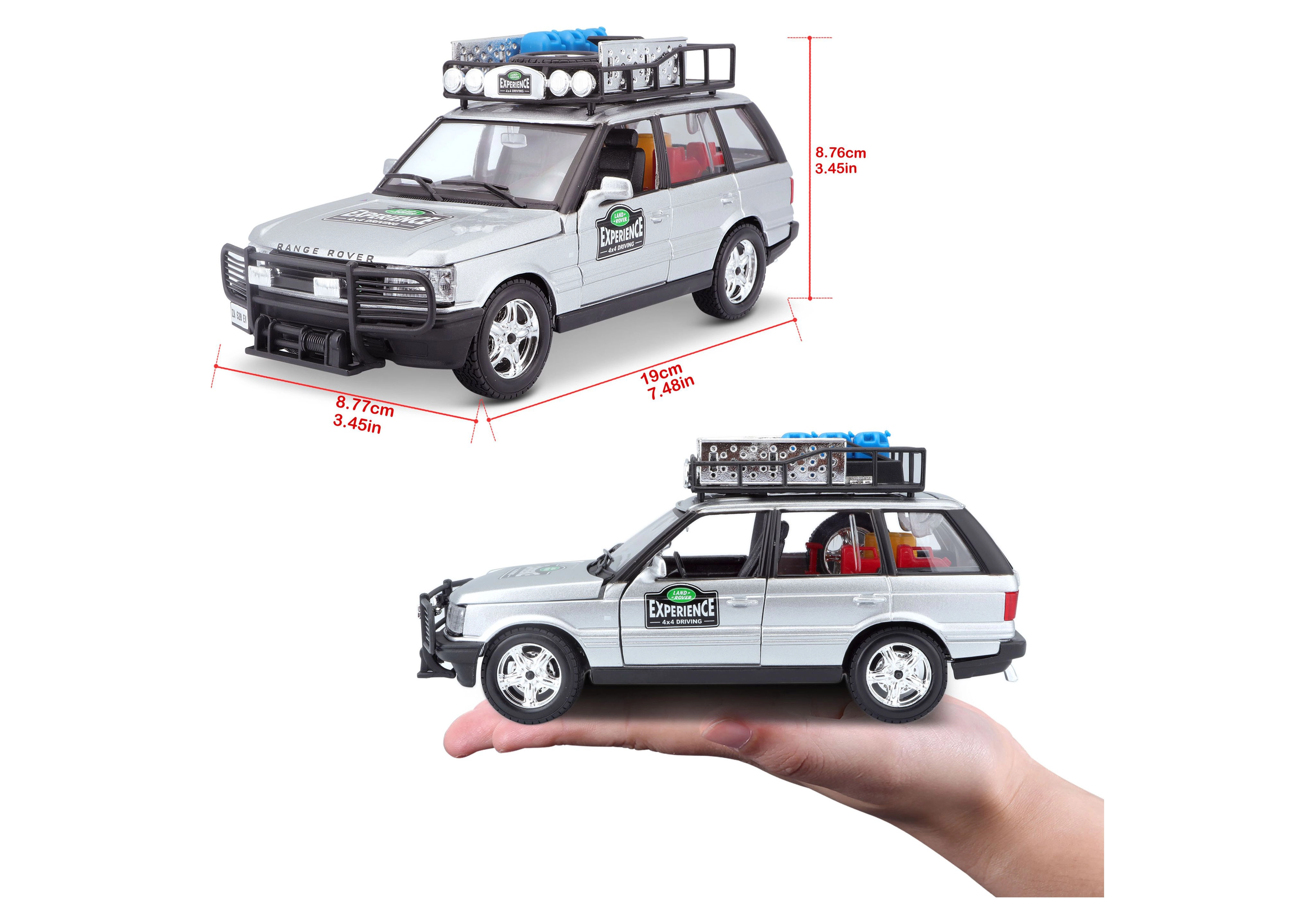 Detalus 1:24 mastelio metalinis modelis ikoniško RANGE ROVER sidabrinės spalvos pradžiugins kolekcininkus ir vaikus. Siūlo atidaromas dalis, laisvai besisukančius ratus ir daugybę realistiškų visureigio priedų ant stogo bagažinės. Puiki dovana ir stilingas akcentas vitrinai.
