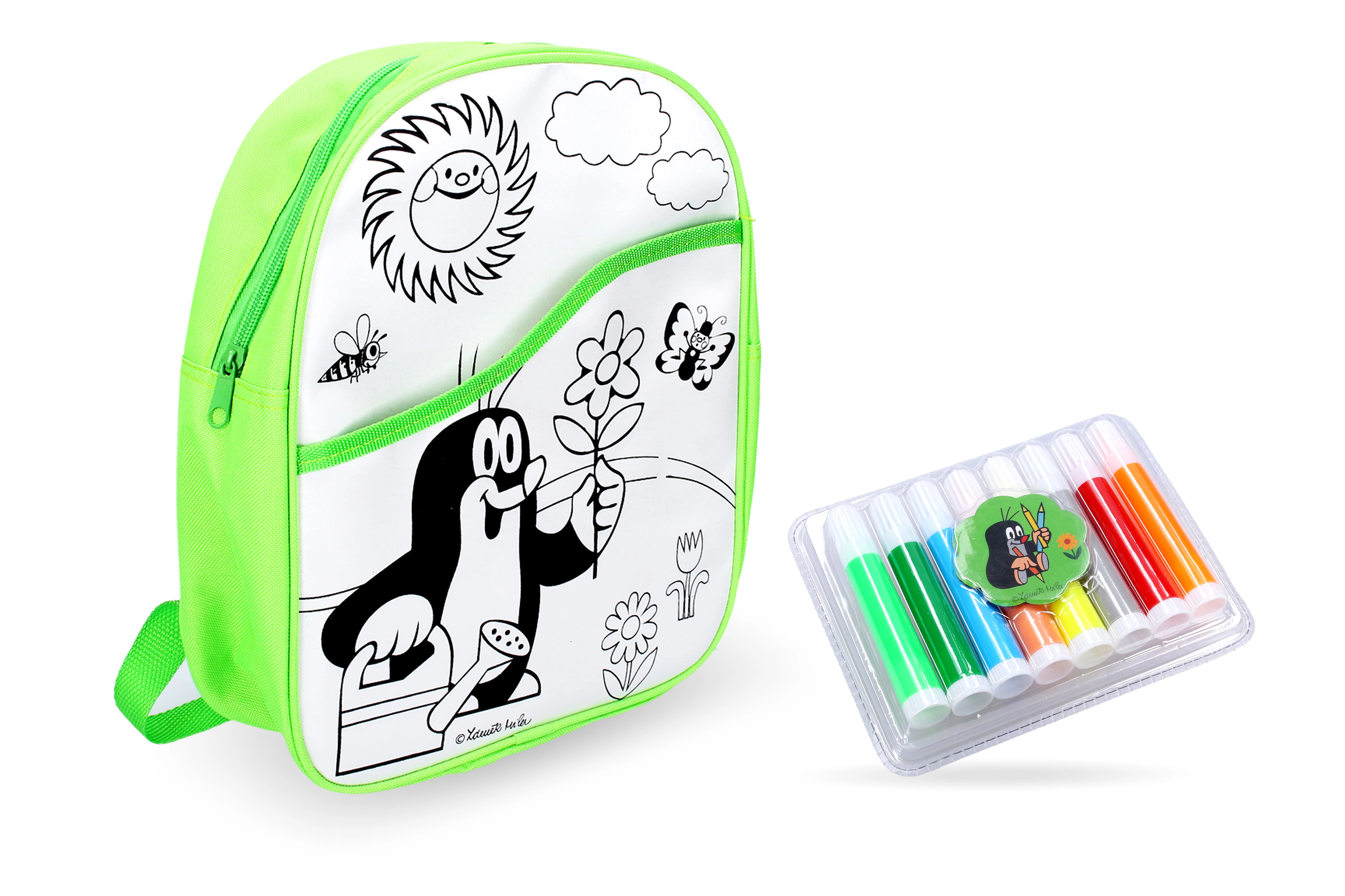 Linksma ir kūrybiška spalvinama kuprinė su KURMIO motyvu mažiesiems menininkams. Pakuotėje yra 8 spalvoti tekstiliniai flomasteriai, kurie lengvai nusiplauna šaltu vandeniu. Idealiai tinka išvykoms ir darželiui, dydis apie 30 × 27,5 cm, rekomenduojama nuo 3 metų.