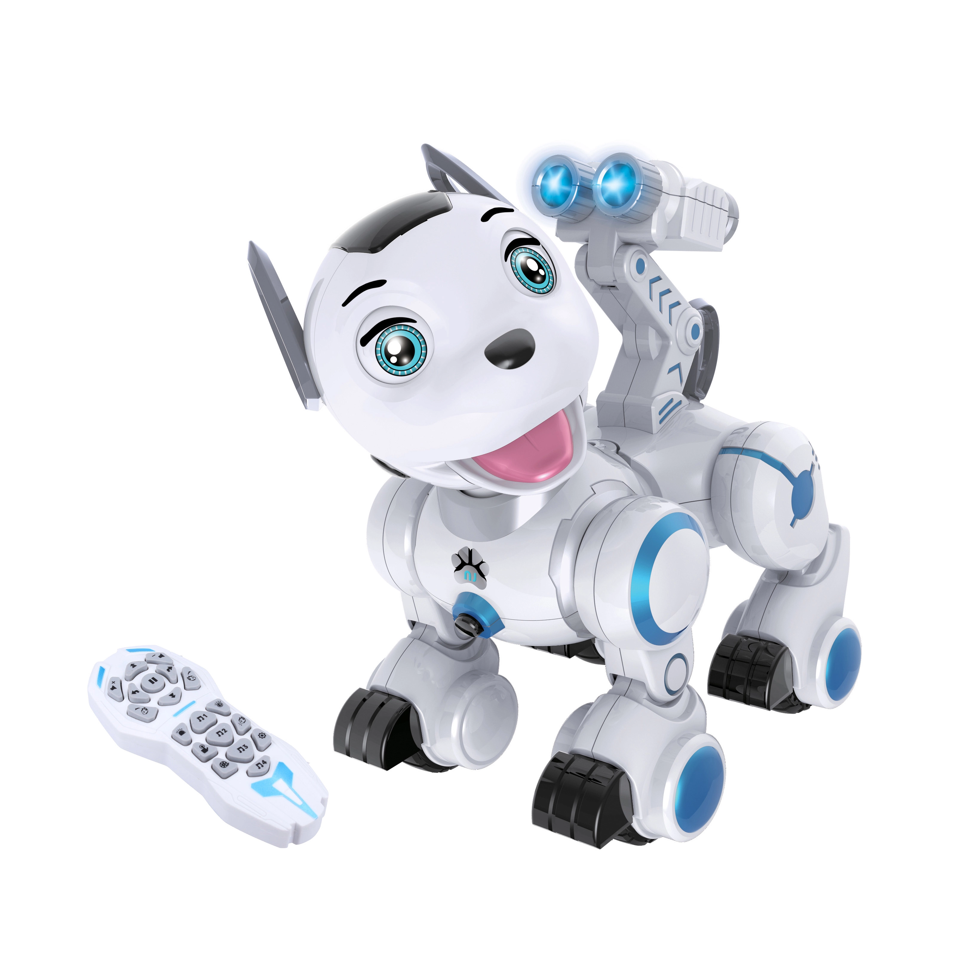 Mielas nuotoliniu būdu valdomas robotinis šuo – puikus draugas vaikams nuo 3 metų. Jis gali eiti pirmyn ir atgal, sukti, sukti galvą, loti ir cypti, o taip pat džiugina šviesos ir garso efektais. Dėl šokio ir linksmų reakcijų jis greitai užkariaus tiek mažų, tiek didelių širdis, patogiai įkraunamas per USB ir pasiruošęs kartu saugoti jūsų teritoriją.
