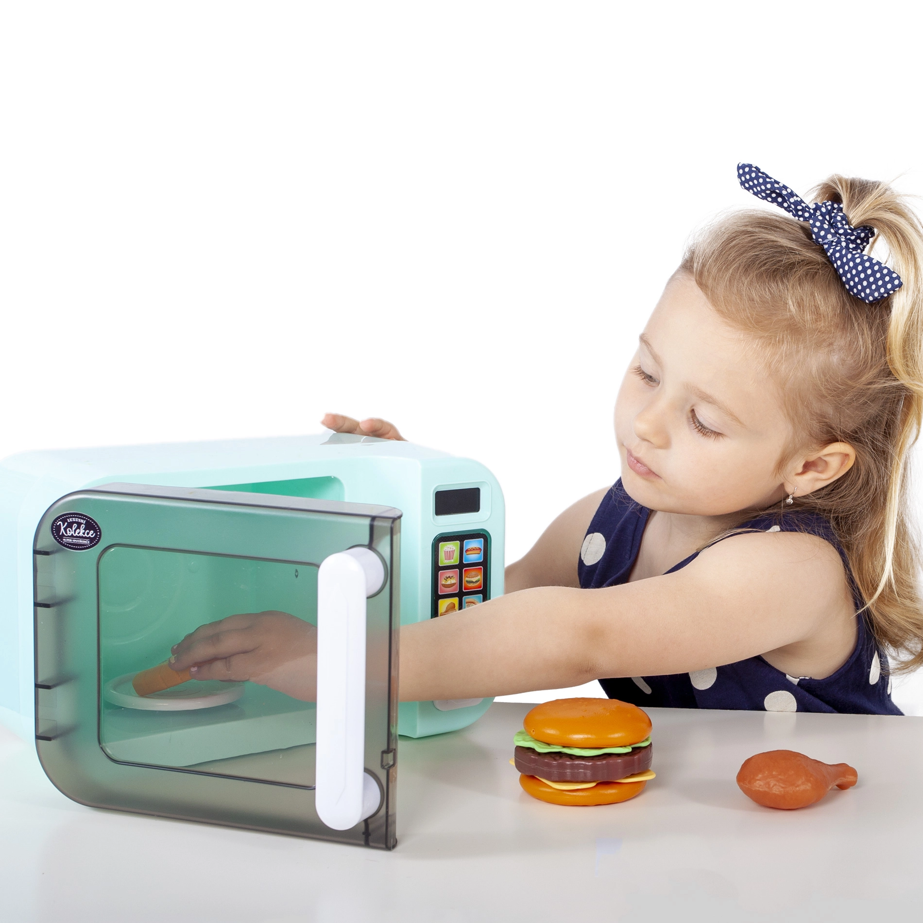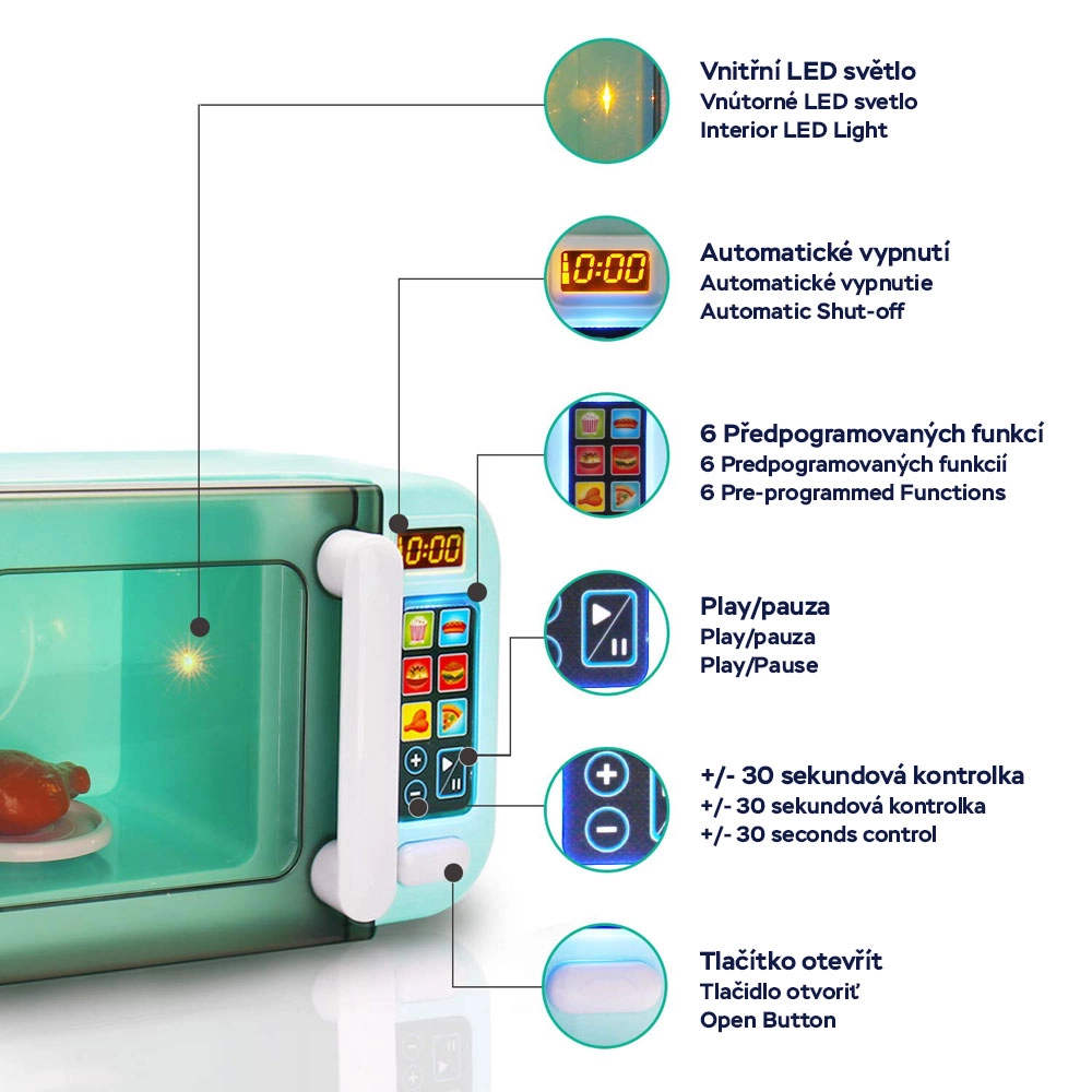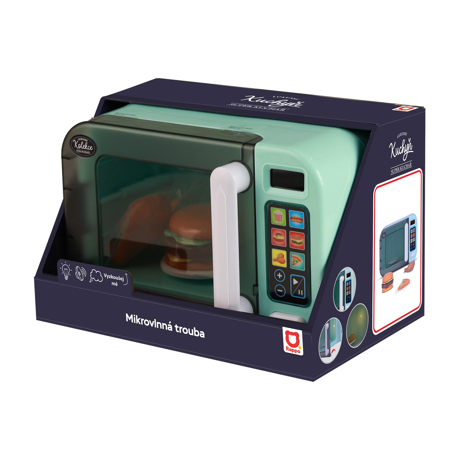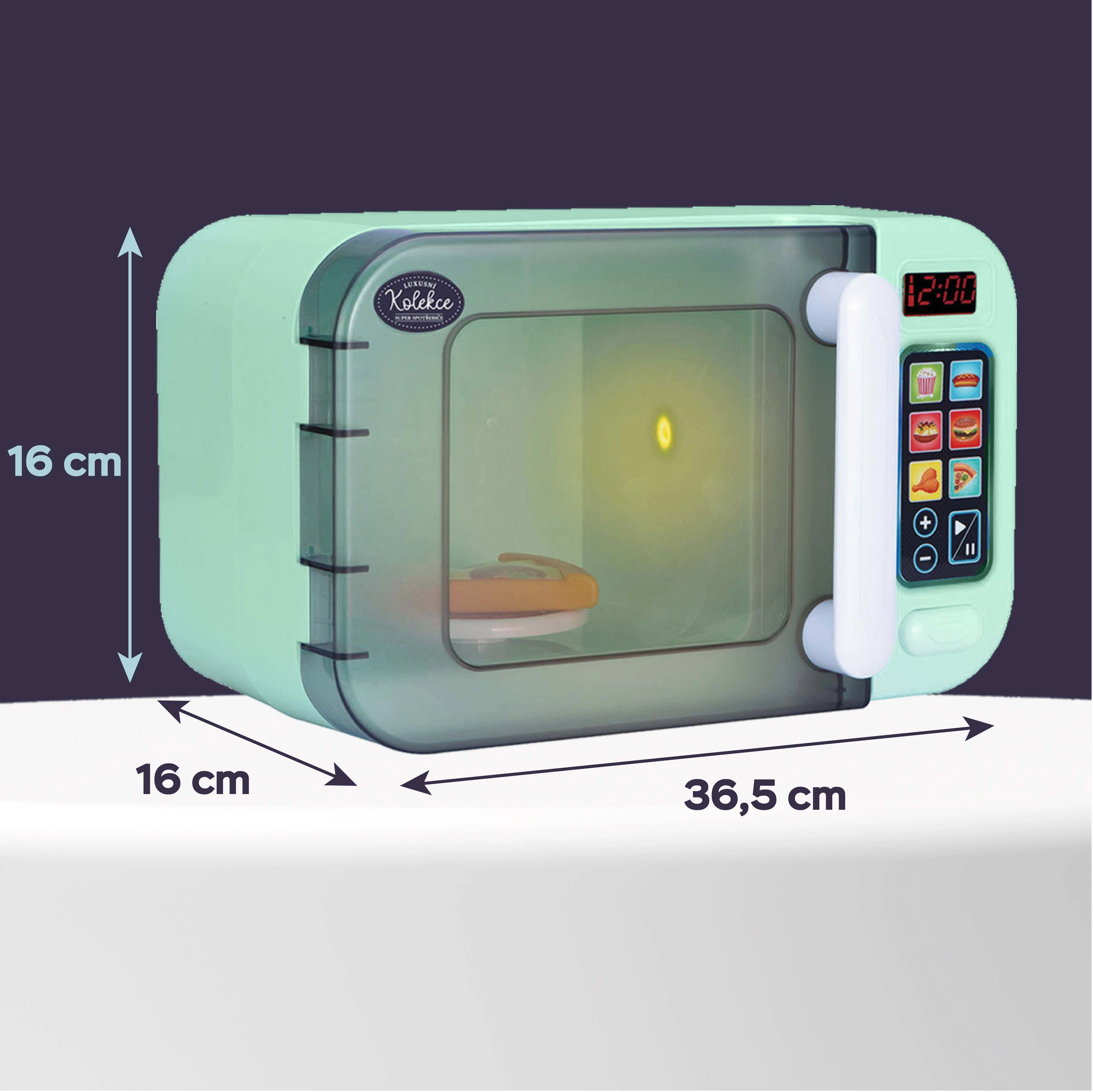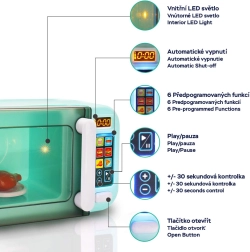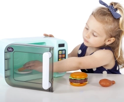 Ši stilinga vaikų mikrobangų krosnelė yra idealus priedas kiekvienai vaikiškai virtuvei. Įjungus programą, viduje esanti lėkštė pradeda suktis, mikrobangų krosnelė šviečia ir skleidžia garsus kaip tikras prietaisas. Dėl jutiklinio skydelio vaikai lengvai „pasirenka“ programas ir žaidimo forma mokosi pagrindinių virtuvės darbų.