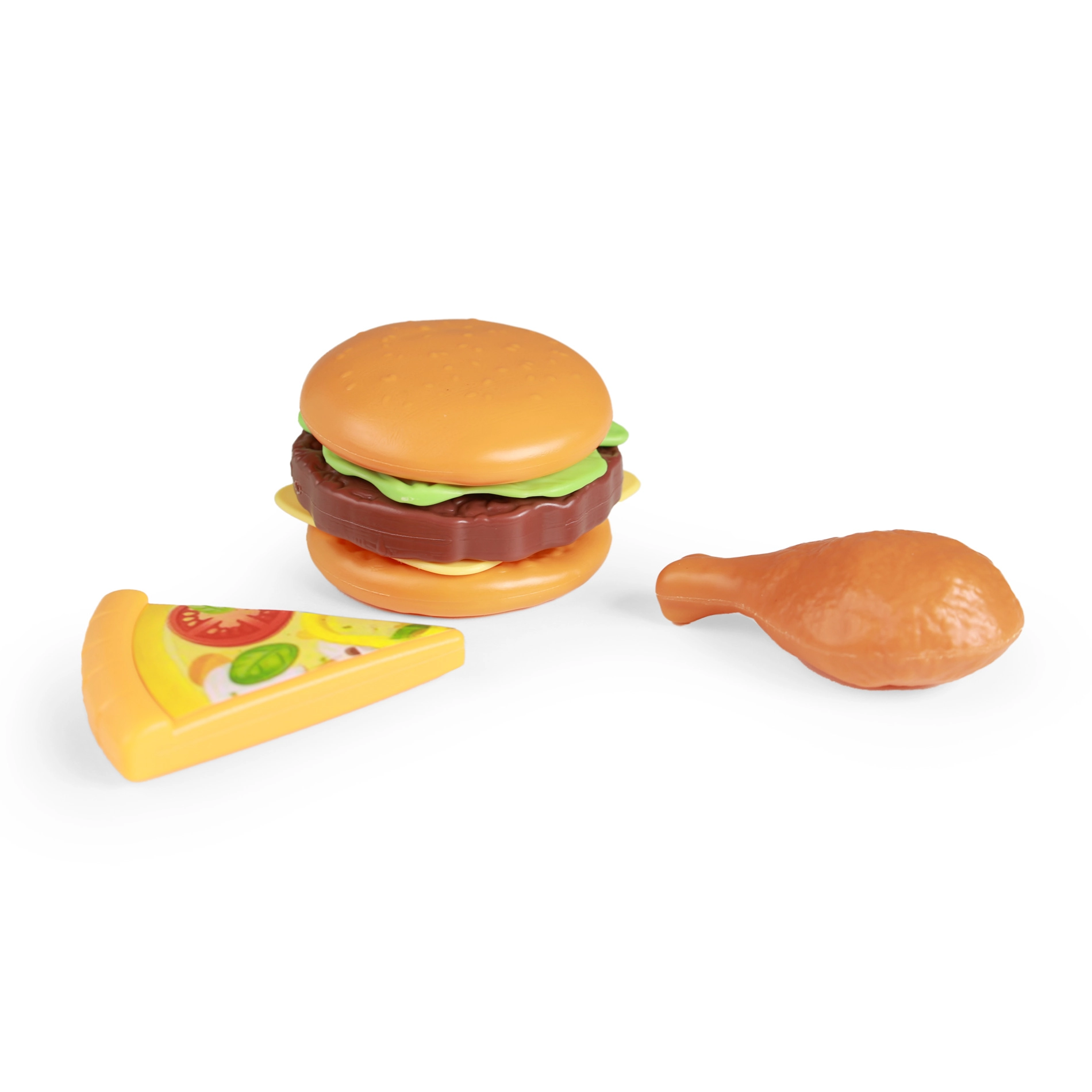 Rinkinyje yra mėsainis, viščiukas ir pica. Priedai praplečia žaidimo galimybes, skatina vaizduotę ir vaidmenų žaidimus vaikiškoje virtuvėje.