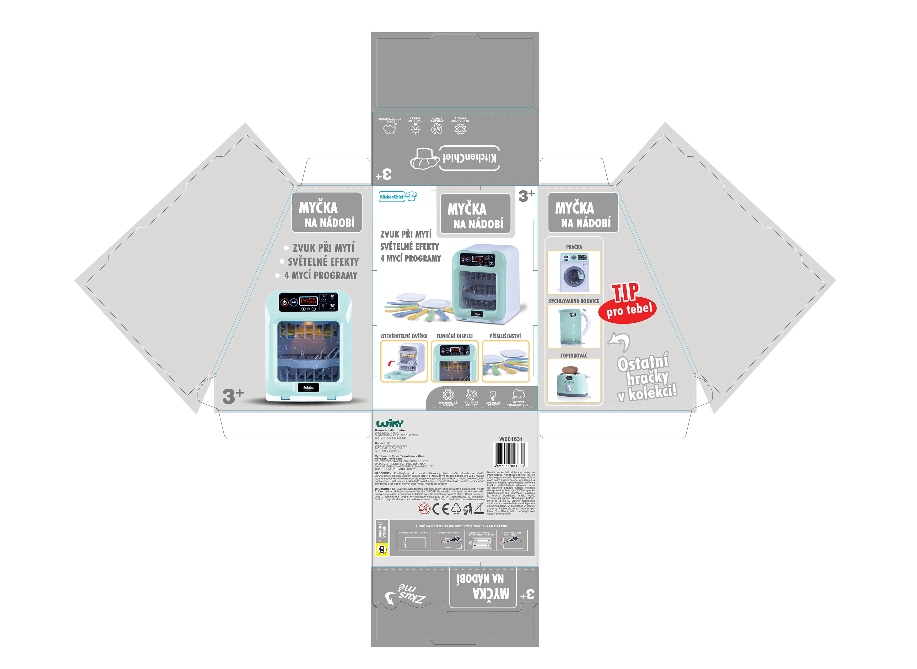 Rinkis iš 4 plovimo programų arba nusistatyk savo laiką pagal poreikį. Indaplovė paruošta naudoti iš karto po išpakavimo – 2× AAA baterijos yra pakuotėje. Puiki dovana, kuri linksmina ir moko tvarkos virtuvėlėje.