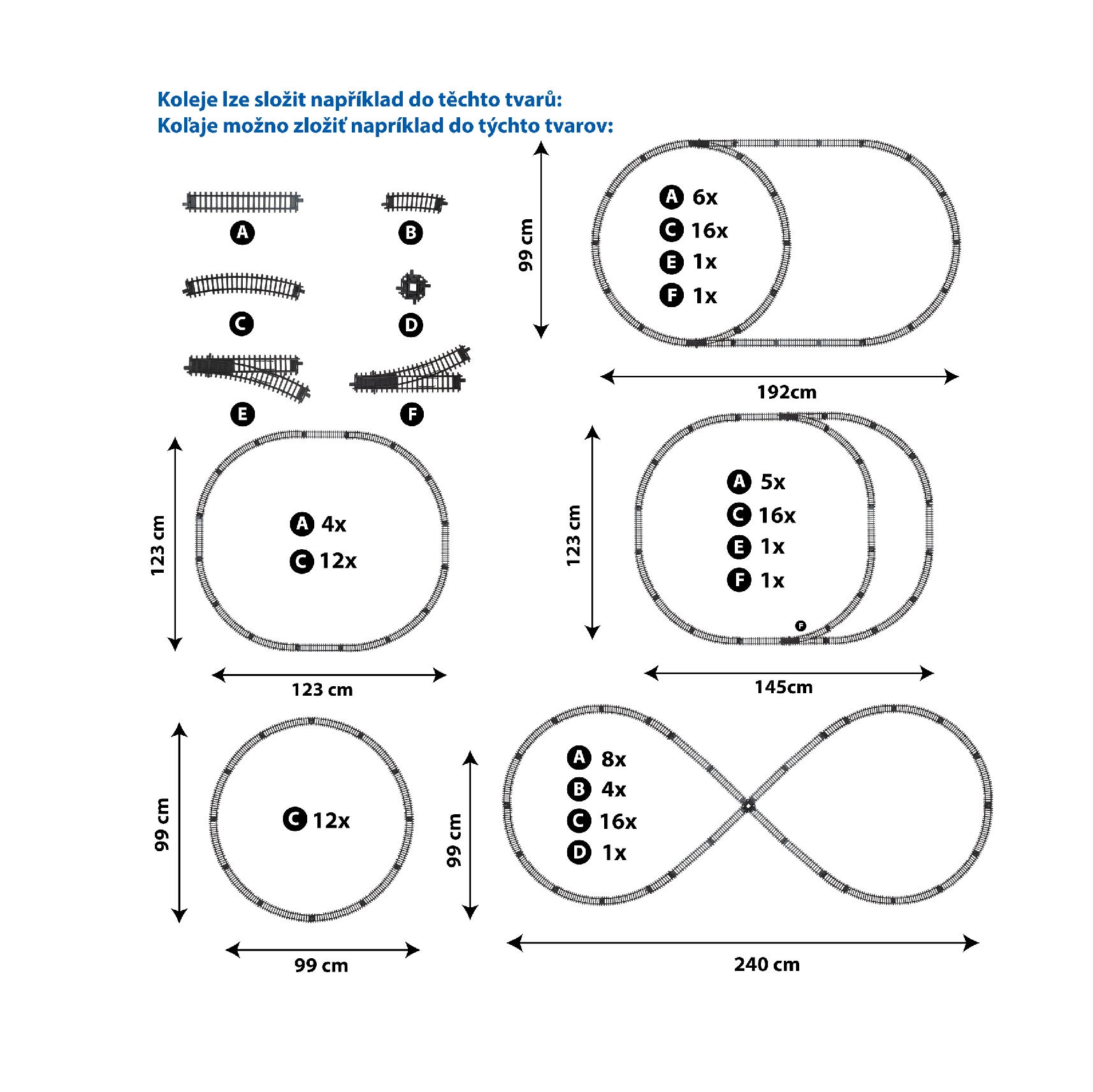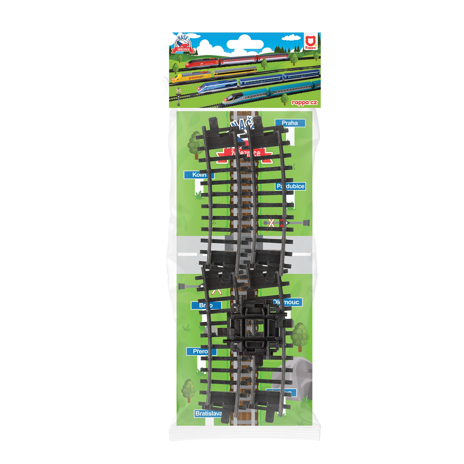 Išplėsk savo traukinių pasaulį rinkiniu, kuriame yra 2 lenkti bėgiai ir sankryža. Dalys suderinamos su RegioJet, Čekijos geležinkeliais, SC Pendolino ir Slovakijos geležinkelių bendrove, todėl lengvai pailginsi ratą ir pridėsi smagią bėgių sankirtą dar ilgesniam važiavimui ir kūrybiškam statymui.