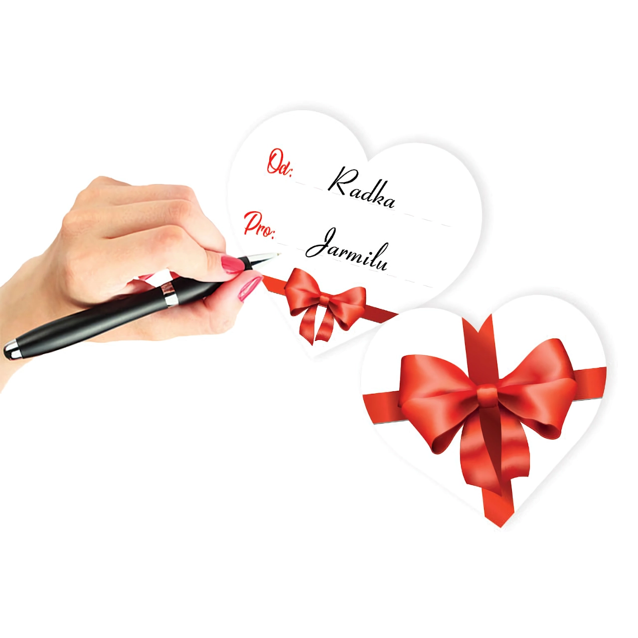 Stilingas satino kaspinas ir širdelės formos popierinė etiketė asmeninei žinutei paverčia meškiną tobula dovana.