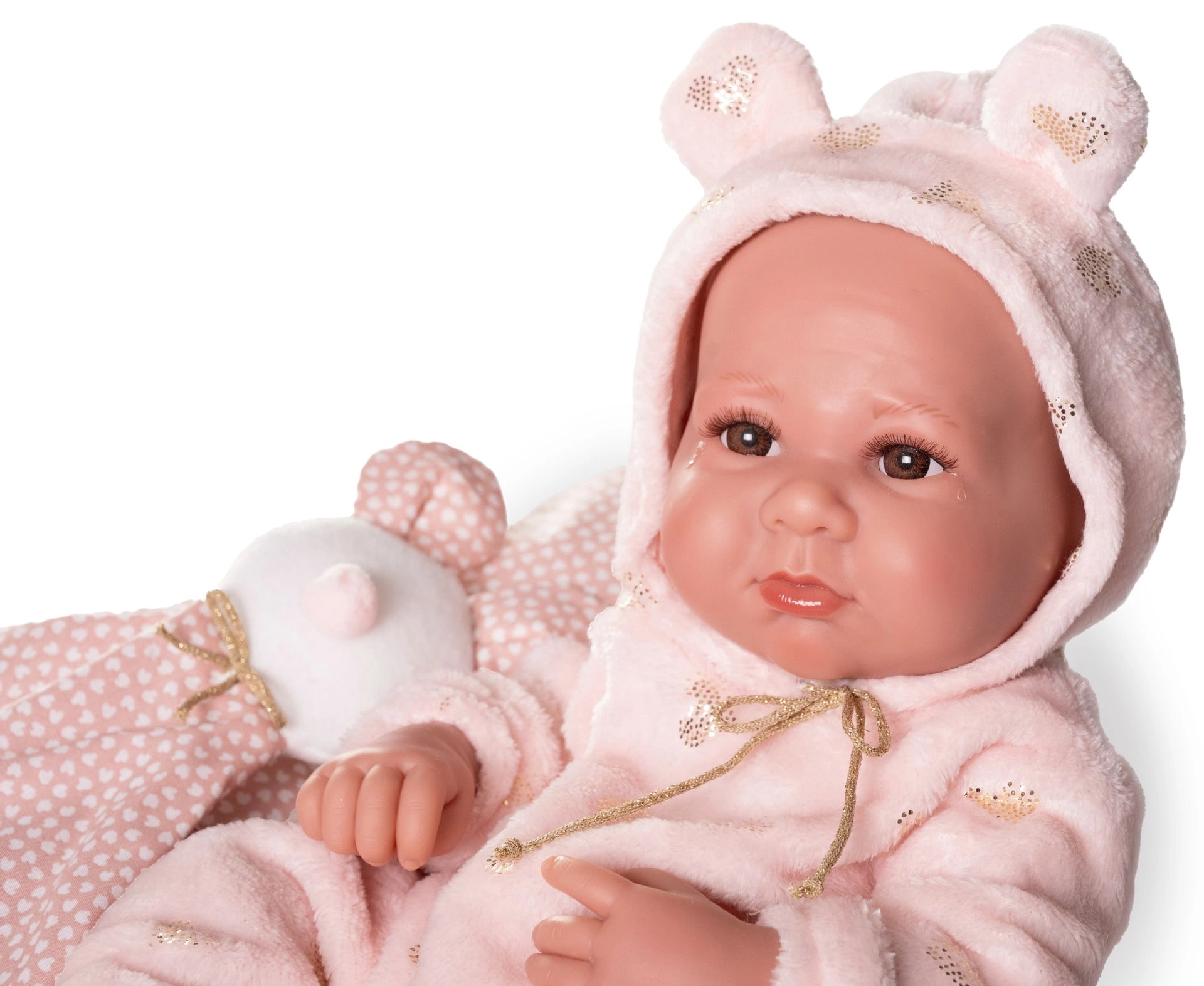 Švelnūs veido bruožai, kūdikiški linkiai ir preciziškai apdorotas vinilo paviršius kuria tikro naujagimio įspūdį ir skatina empatišką vaidmenų žaidimą.