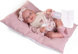 Rinkinyje yra vandeniu pildomas buteliukas ir dvi vienkartinės sauskelnės. Visa komplektacija kruopščiai sudėta į dovanų dėžutę, todėl tai puiki dovana bet kokia proga. 42 cm dydžio lėlė idealiai tinka vaikams nuo 3 metų, skatina kūrybišką žaidimą ir rūpinimąsi.
