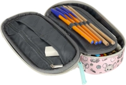 Atvartas su elastingomis kilpelėmis laiko pieštukus, tušinukus ir flomasterius savo vietoje. Taip pat yra užsegama kišenė ir dvi pertvarėlės smulkmenoms.