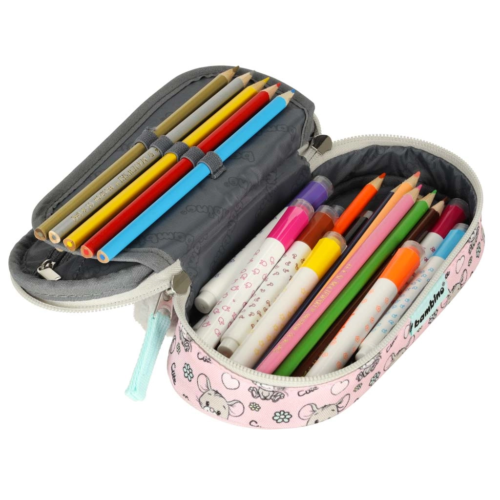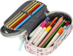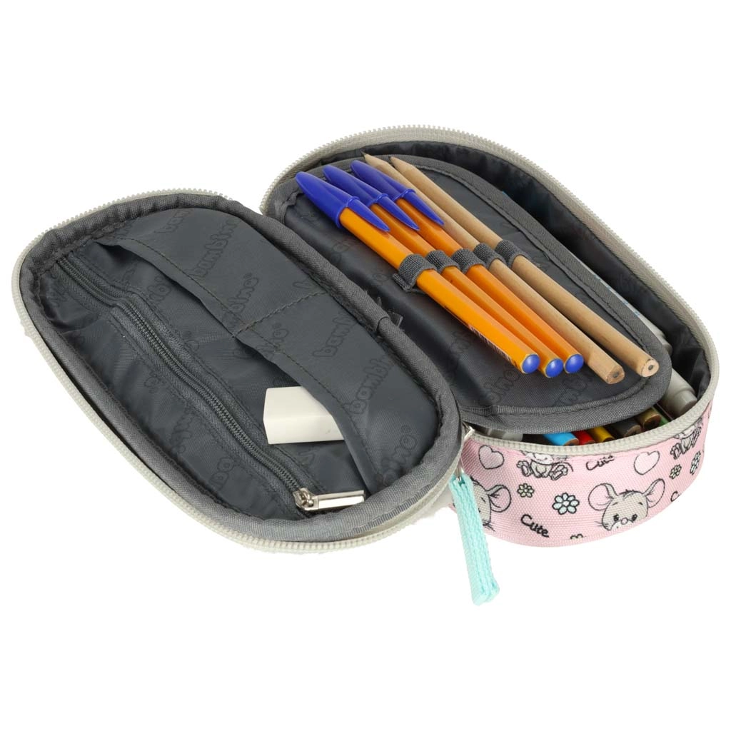 Vidinę sandarą sudaro judantis atvartas su gumelėmis rašymo reikmenims, užsegama kišenė smulkmenoms ir dar dvi pertvaros nepriekaištingai tvarkai. Dvigubas užtrauktukas su ergonomiškais trauktukais palengvina atidarymą ir vaikų rankoms. Stilių papildo pūkuotas gyvūno motyvas ir spausdintas pamušalas.