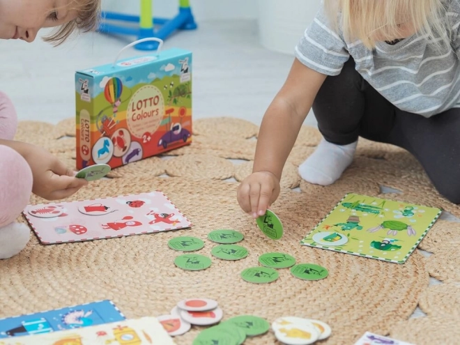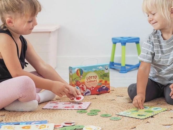 Vaikiškas žaidimas Loto Spalvos siūlo paprastą žaidimo principą: vaikai priskiria žetonus prie teisingų vietų žaidimo lentoje. Ši smagi veikla ne tik skatina žodyno plėtrą, bet ir padeda stiprinti koncentraciją bei loginį mąstymą.