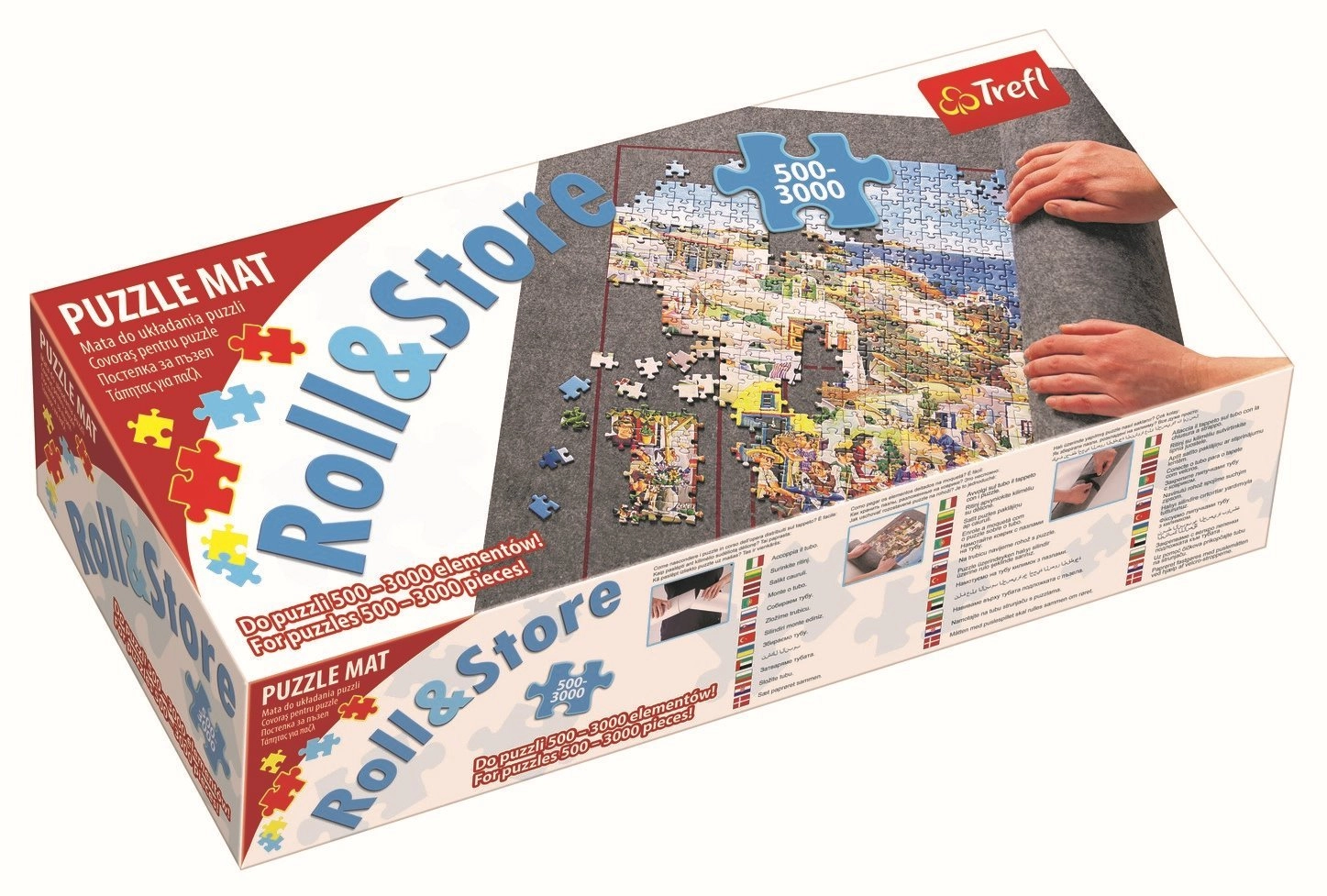 Mėgaukitės patogiu dėliojimu su praktišku ritininiu TREFL dėlionių kilimėliu. Veltinio paviršius neleidžia detalėms slysti ir suteikia pakankamai vietos rūšiavimui bei didelių motyvų dėliojimui. Baigę darbą tiesiog padėkite vamzdį ant kilimėlio, susukite ir viską pritvirtinkite „velcro“ juostelėmis – nebaigta dėlionė išliks nepakitusi iki kito karto.