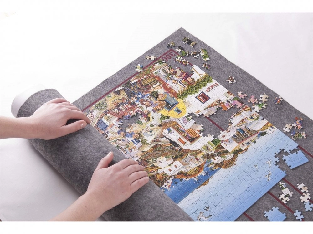 Baigus dėliojimo sesiją, uždėkite vamzdį ant kilimėlio su dėlione, paprastai jį užvyniokite ir pritvirtinkite pridėtomis „velcro“ juostelėmis. Viskas laikosi kartu ir niekas nepasimeta.
