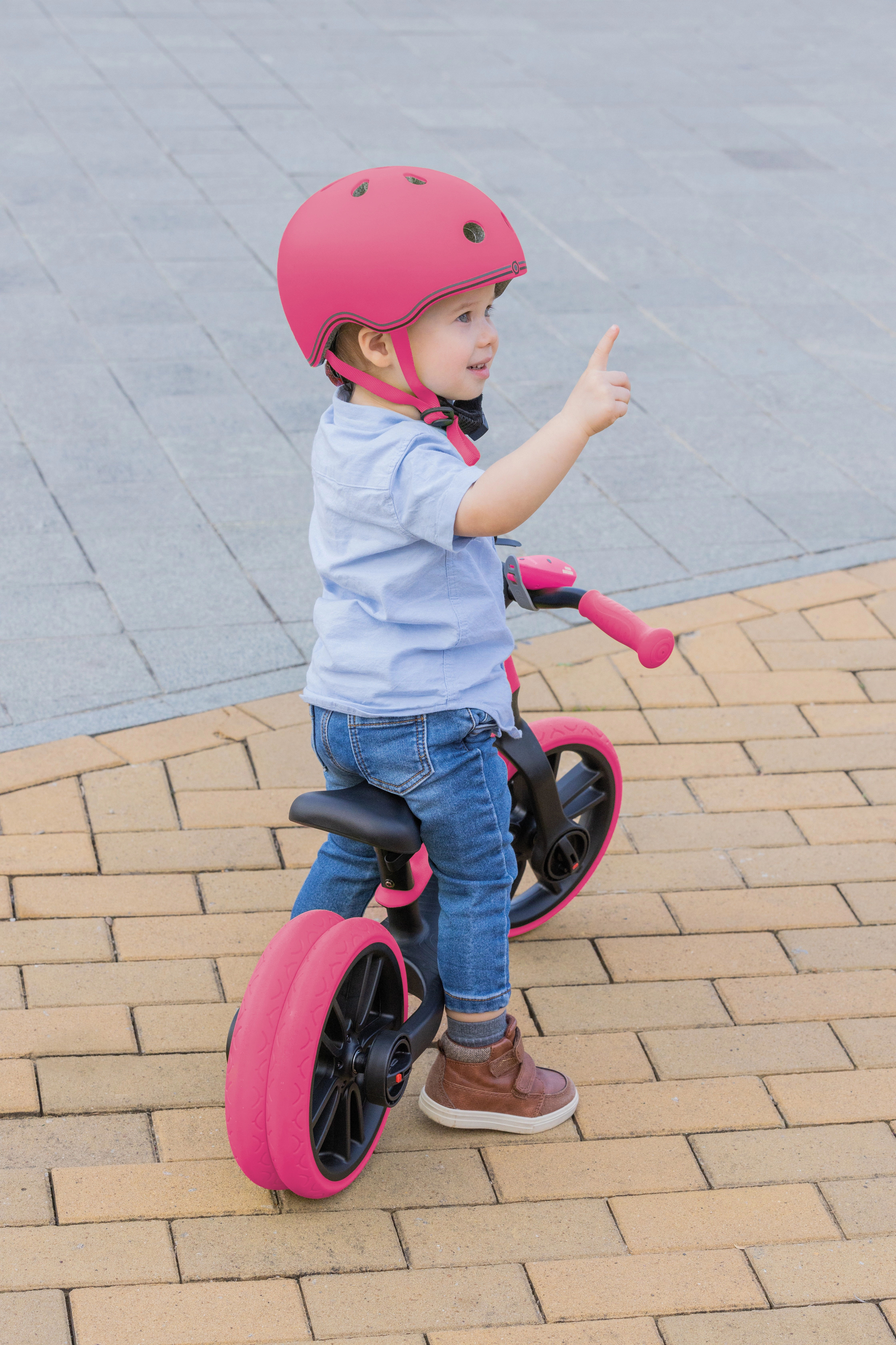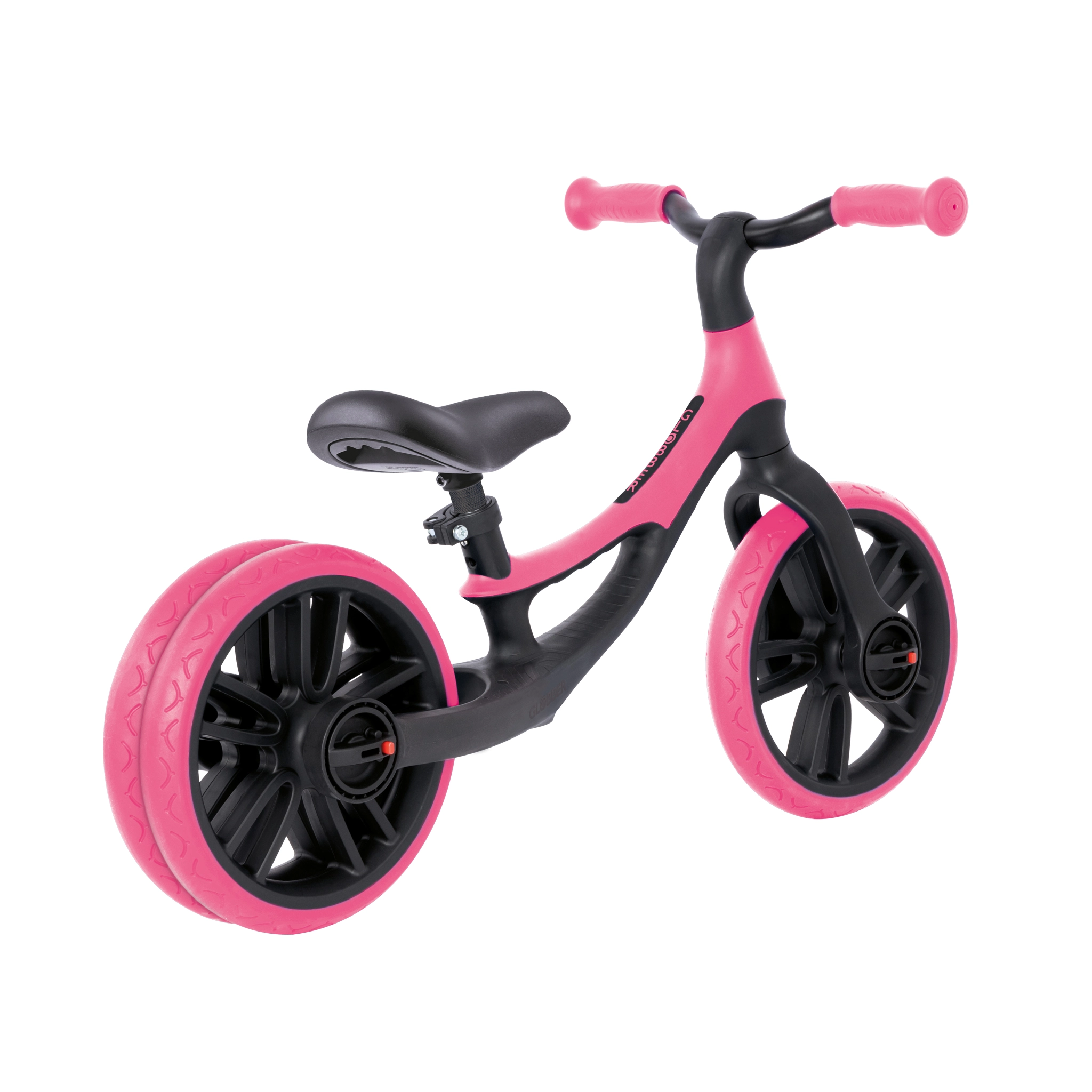GLOBBER Go Bike Elite Duo balansinis dviratukas – idealus pirmasis dviratis patiems mažiausiems. Žema rėmo įlipimo zona, ergonomiškos rankenos ir minkšta, aukštį reguliuojama sėdynė padeda išlaikyti taisyklingą sėdėseną ir užtikrintą valdymą. Dėl tylių ir gerai sukimbančių 10" TPE ratų vaikai lengvai mokosi laikyti pusiausvyrą ir sklandžiai sukti.