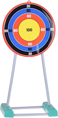 Taikinys ant stovo su spalvotais žiedais ir taškų skaičiavimu leidžia tobulinti taiklumą.