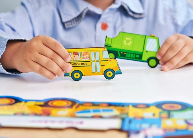 Kiekviena dalis vaizduoja skirtingą transporto priemonę arba kelio ženklą, todėl vaikams lengva įsisavinti naujas sąvokas ir plėsti žodyną.