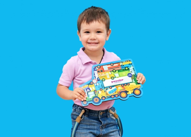 Sulipdytos dėlionės matmenys yra apie 29 × 20,5 cm – kaip tik vaikų rankoms ir namų žaidimų stalui. Dėlionė puikiai tinka vaikams, besidomintiems įvairiais automobiliais, ir kartu skatina akių–rankų koordinaciją bei kognityvinę raidą.