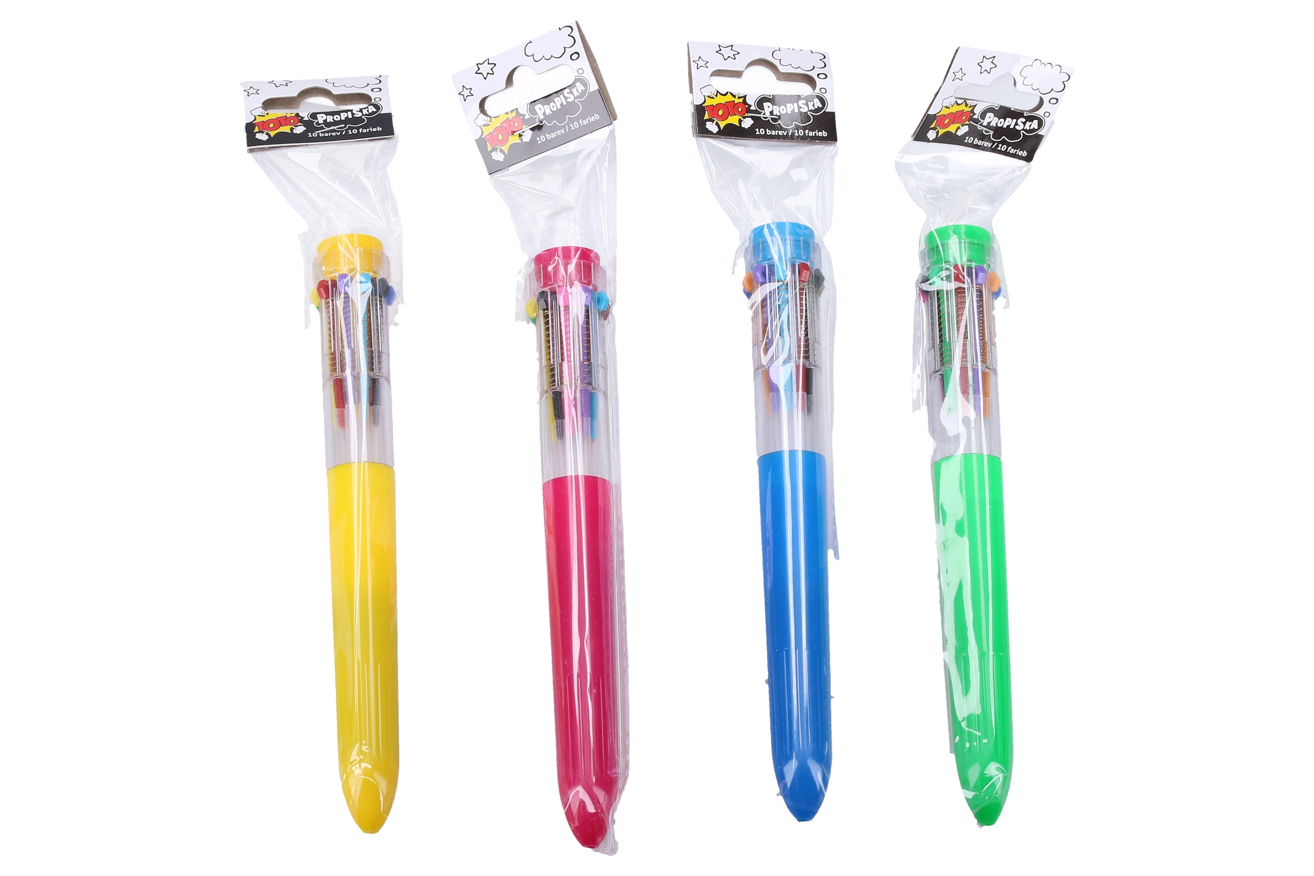 Mėgaukitės rašymu su daugiaspalviu rašikliu, kuris siūlo net 10 skirtingų spalvų jūsų užrašams ir piešiniams.