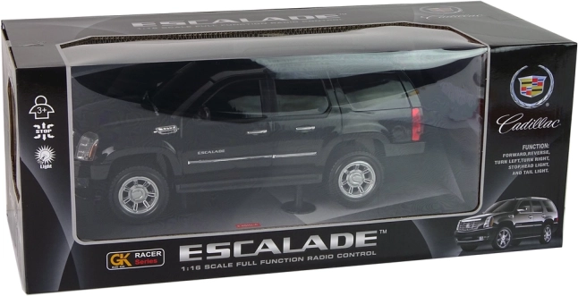 Stilingas RC automobilis CADILLAC ESCALADE 1:16 elegantiškos juodos spalvos pasižymi realistinėmis detalėmis, LED žibintais ir garsiniais efektais – variklio bei signalo. Dėl preciziško nuotolinio valdymo lengvai važiuoja pirmyn/atgal ir suka į šonus. Puikus pasirinkimas mažiems ir vyresniems automobilių gerbėjams, su CE sertifikatu ir EN71 standartu.