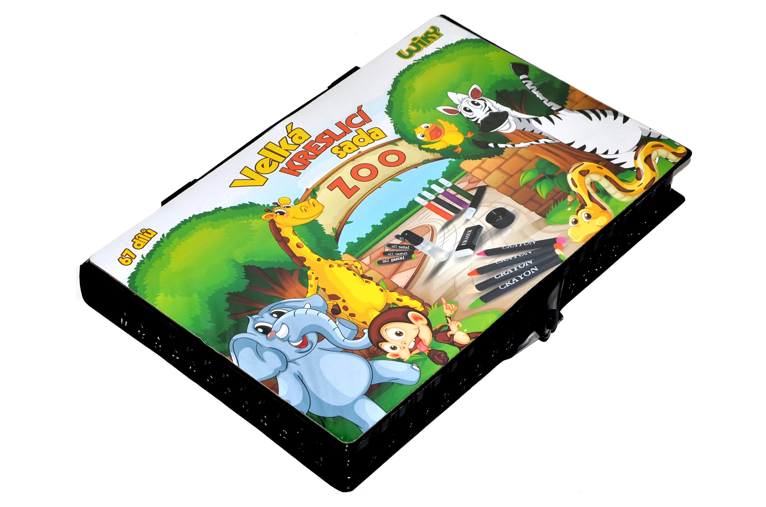 Praktiškas kūrybinis lagaminėlis su ZOO motyvu siūlo 67 dalis mažiems ir vyresniems menininkams. Viduje rasite 12 flomasterių, 12 pieštukinių pastelių, 12 vaškinių kreidelių ir 12 aliejinių pastelinių kreidelių, taip pat akvareles (12 atspalvių), pieštuką, paletę, teptuką, trintuką, drožtuką, liniuotę ir klijus popieriui. Viskas tvarkingai sudėta į tvirtą lagaminėlį – idealu namuose, mokykloje ir kelionėse.
