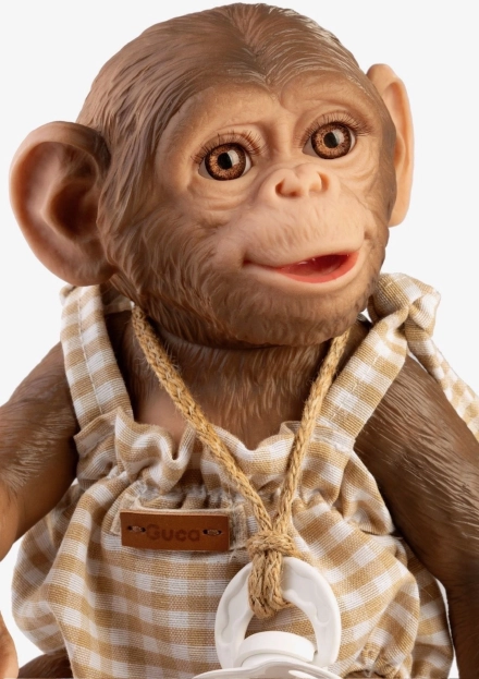Mielas ir įtikinamai sukurtas beždžionės jauniklis su pilnai viniliniu 32 cm kūnu pradžiugins tiek mažus, tiek didelius gyvūnų mylėtojus. Jis pasižymi realistinėmis detalėmis, yra pozicionuojamas ir dėl naudojamos medžiagos taip pat tinka maudytis (atsargiai dėl blakstienų). Rankų darbo, pagaminta Ispanijoje, pateikiama dovaninėje dėžutėje.