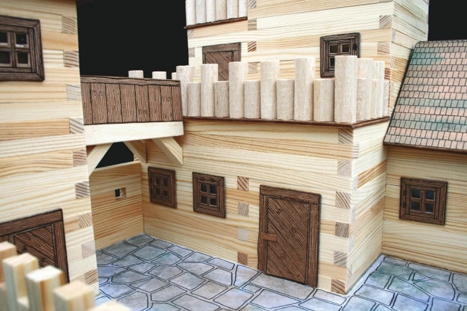 Mediniai tašeliai 9×9 mm ir popieriniai priedai (langai, durys, stogai) užtikrina tikrovišką viduramžių architektūros vaizdą.