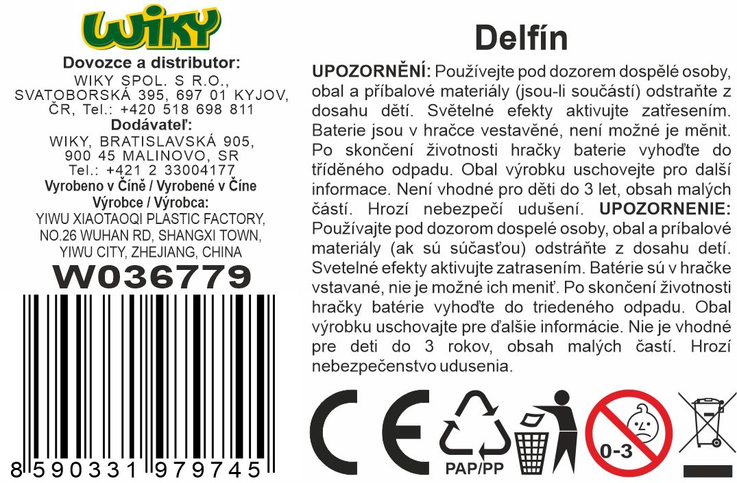 Šis 16 cm ilgio spaudomas delfinas – idealiai tinka žaisti tiek vandenyje, tiek sausumoje. Minkštas, malonus kūnas patogiai laikomas mažose rankutėse, o paprastas dizainas be aštrių briaunų užtikrina komfortišką ir saugų žaidimą. Paspaudus įsijungia šviesos efektai, kurie skatina smalsumą ir lavina pojūčius.