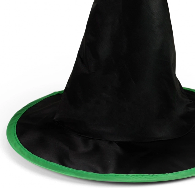 Tobulai papildo Helovino kostiumą kiekvienam mažajam burtininkui. Pagaminta iš kokybiškos juodos šusčo medžiagos, skrybėlė papuošta ryškiu žaliu apsiuvu, kuris traukia dėmesį.