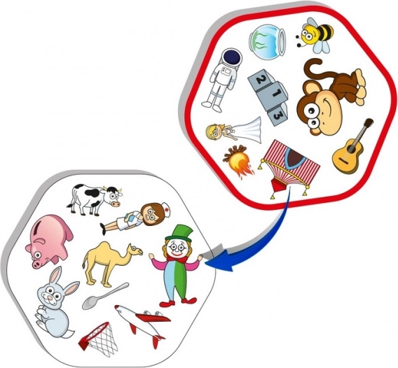 Žaidėjai paeiliui stengiasi kuo greičiau rasti ir įvardyti atitikmenį tarp dviejų žaidimo kortelių. Žaidime yra 72 kortelės ir 64 simboliai, kurie suteikia begalę galimybių ir nesibaigiančio smagumo.